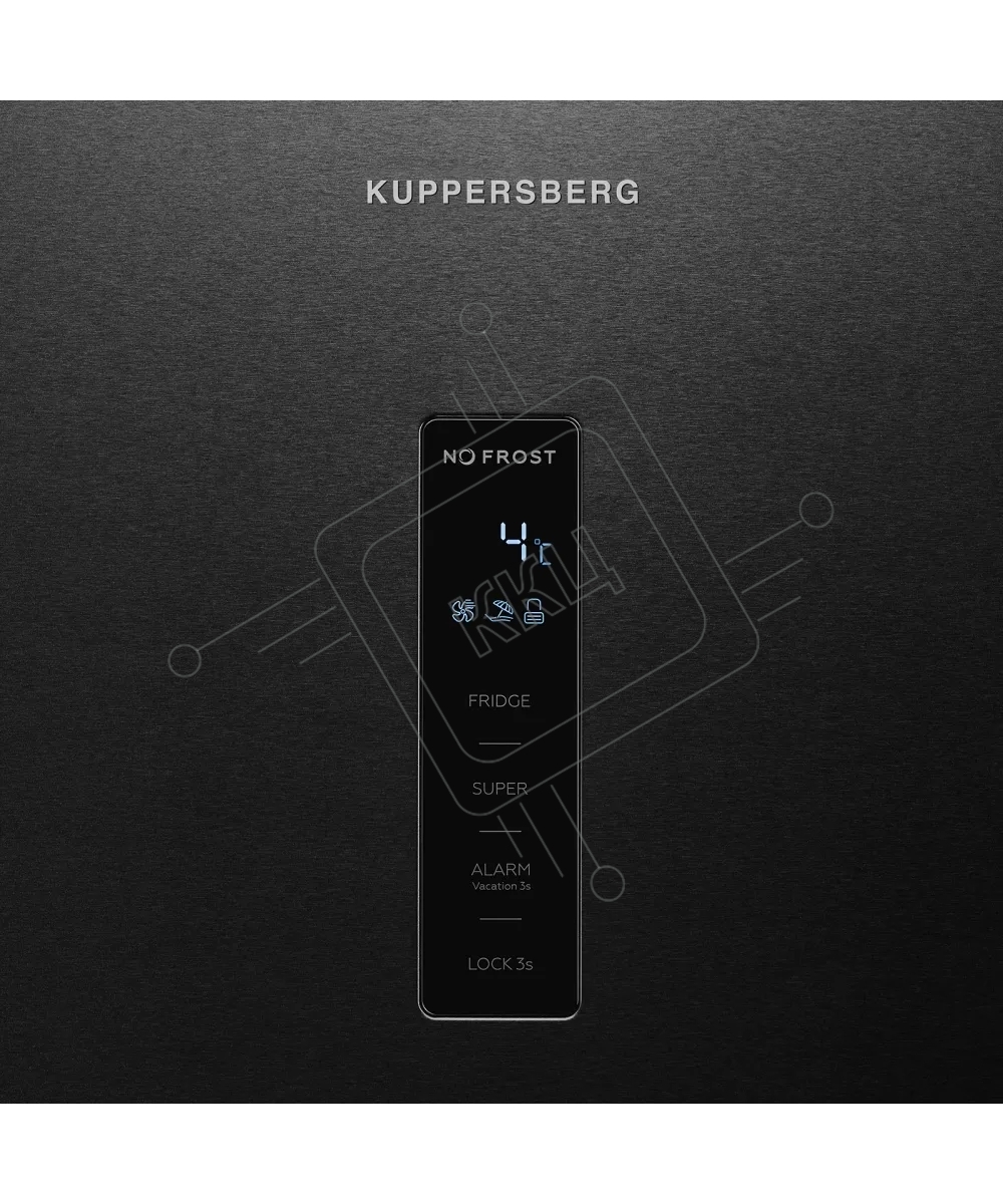 Холодильник Kuppersberg NRS 189 DX, High-Tech, отдельностоящий, однодверный, без МК, объем 387 л, электронное управление, No Frost, LED дисплей, LED освещение, супер охлаждение, режим "Отпуск", зона свежести, энергоэффективность А+, черный