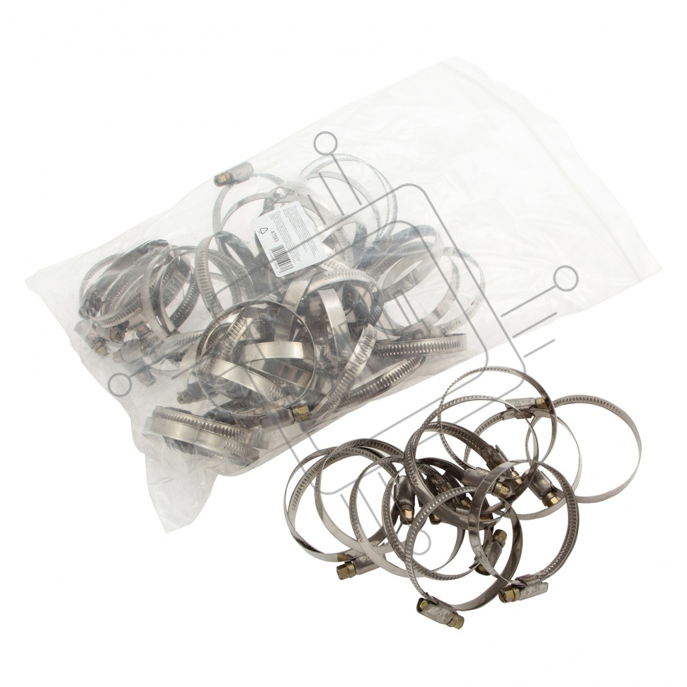 Хомуты нержав. сталь, стандартное болтовое крепление 40-60 мм, ширина 9 мм, 50 шт. Сибртех