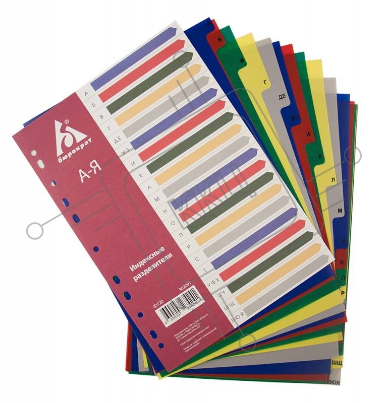 Индексные разделители Бюрократ ID120 А4, пластик, А-Я цветные