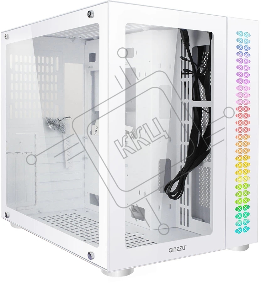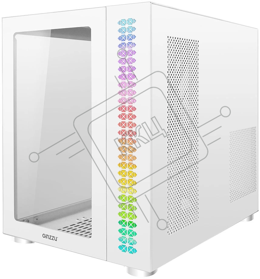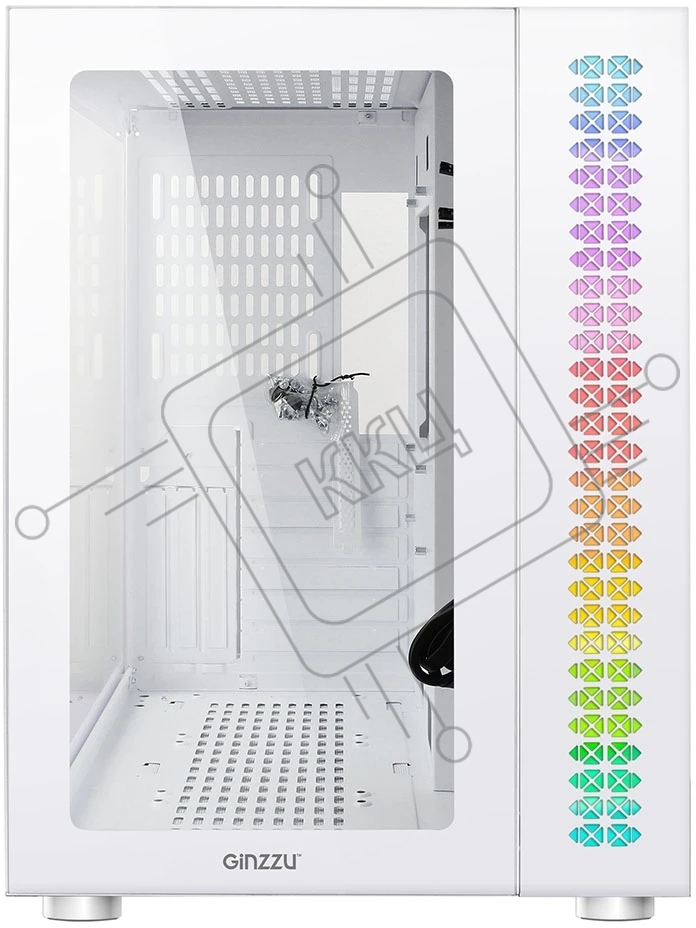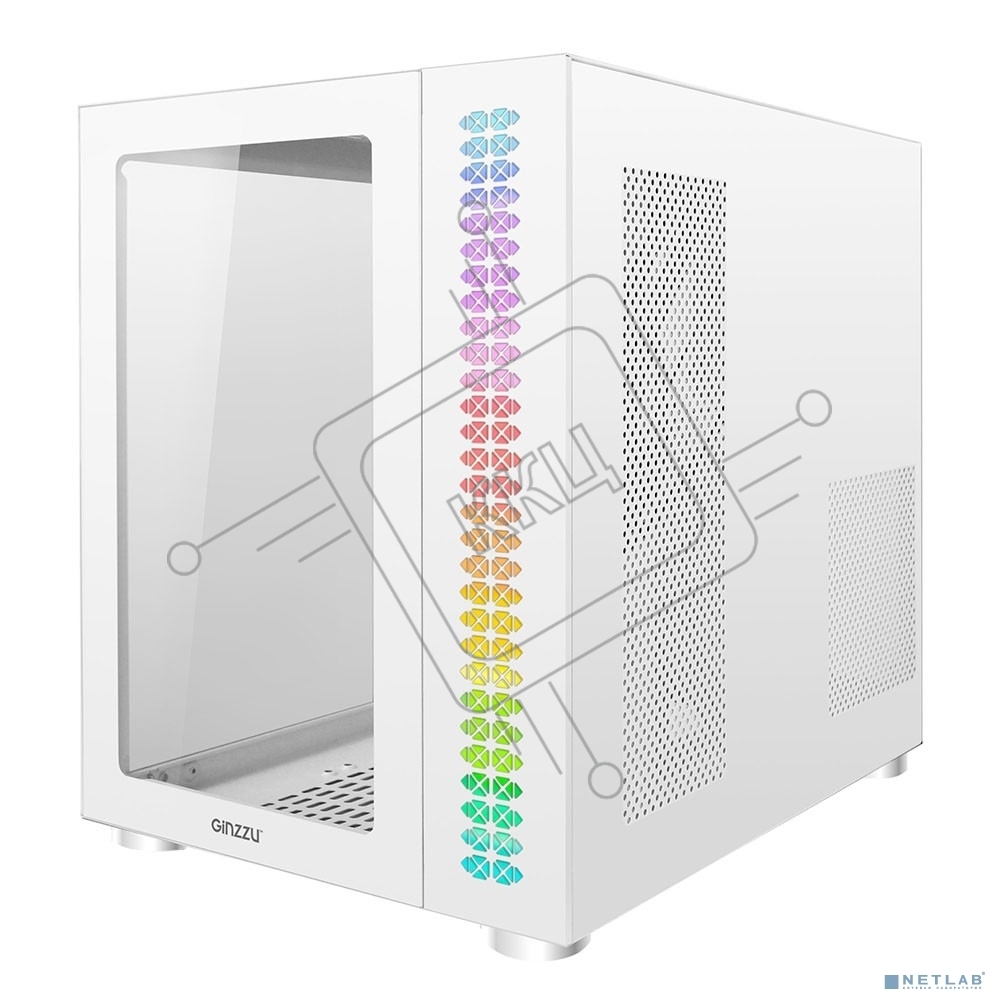 Компьютерный корпус Ginzzu V560 RGb подсветка, закаленное стекло 1*USB 3.0,1*USB 2.0, AU белый ATX