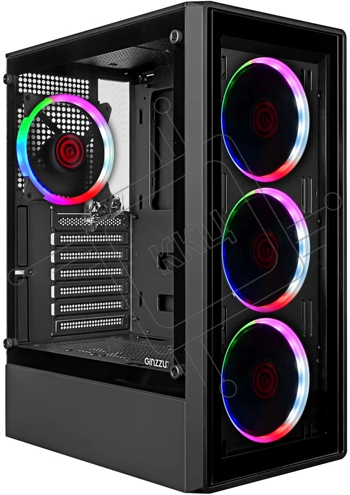 Компьютерный корпус Ginzzu CL325 ATX FAN 4*RR4 FRGb передняя панель Стекло