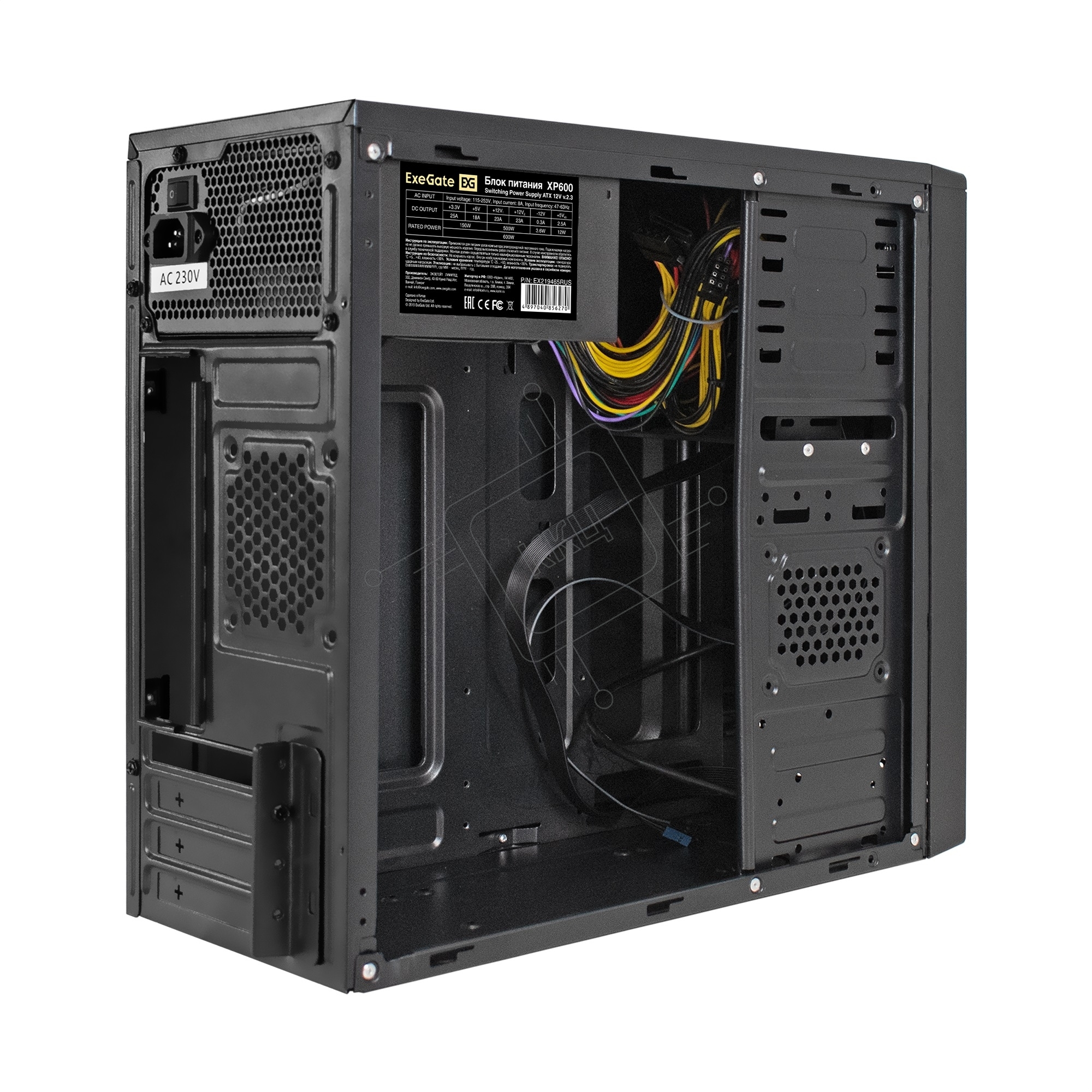 Компьютерный корпус Minitower ExeGate MA-401-XP600 (mATX, БП XP600 с вент. 12см, 2*USB+1*USB3.0, аудио, черный)
