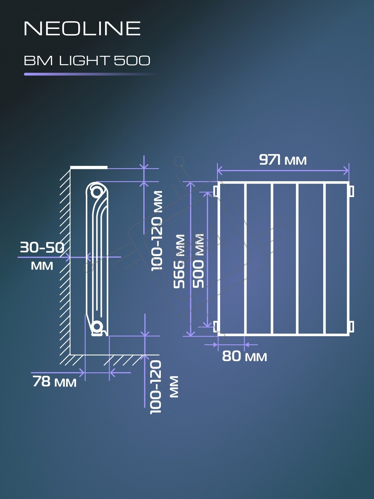 Радиатор биметаллический NEOLINE BM LIGHT 500 - 12 секц.