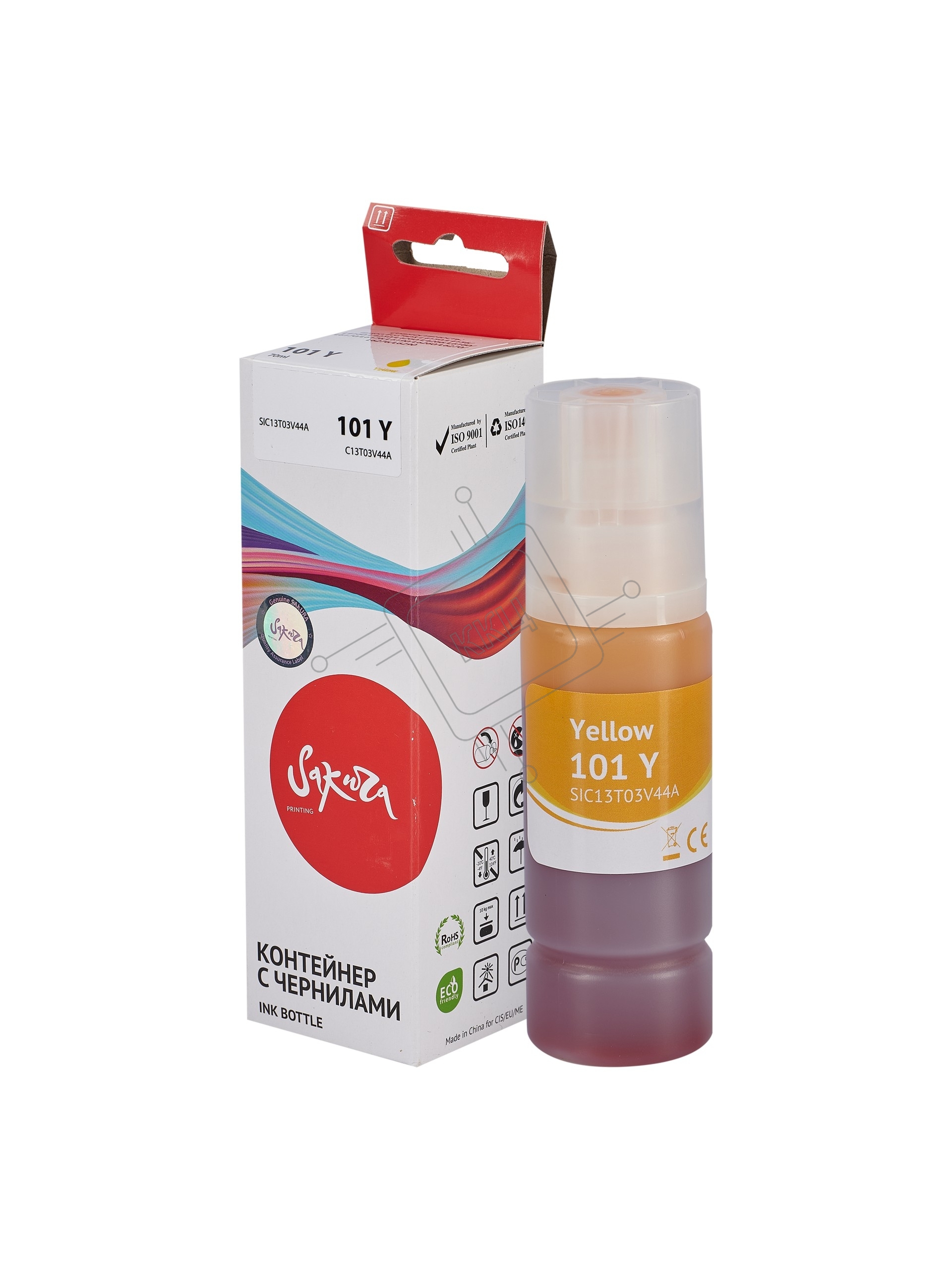 Контейнер с чернилами Sakura C13T03V44A (101 Y) для Epson, водорастворимый тип, желтый, 6000 к., 70 мл.