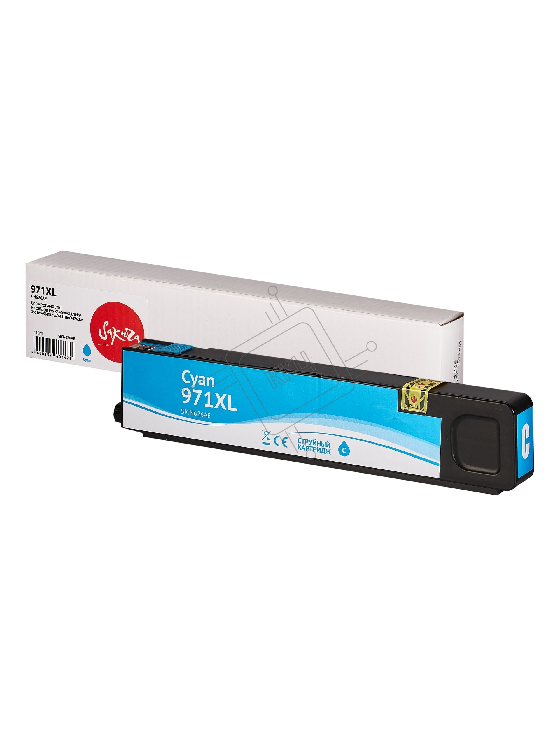 Струйный картридж Sakura CN626AE (№971XL Cyan) для HP, голубой, 110 мл., 7000 к.