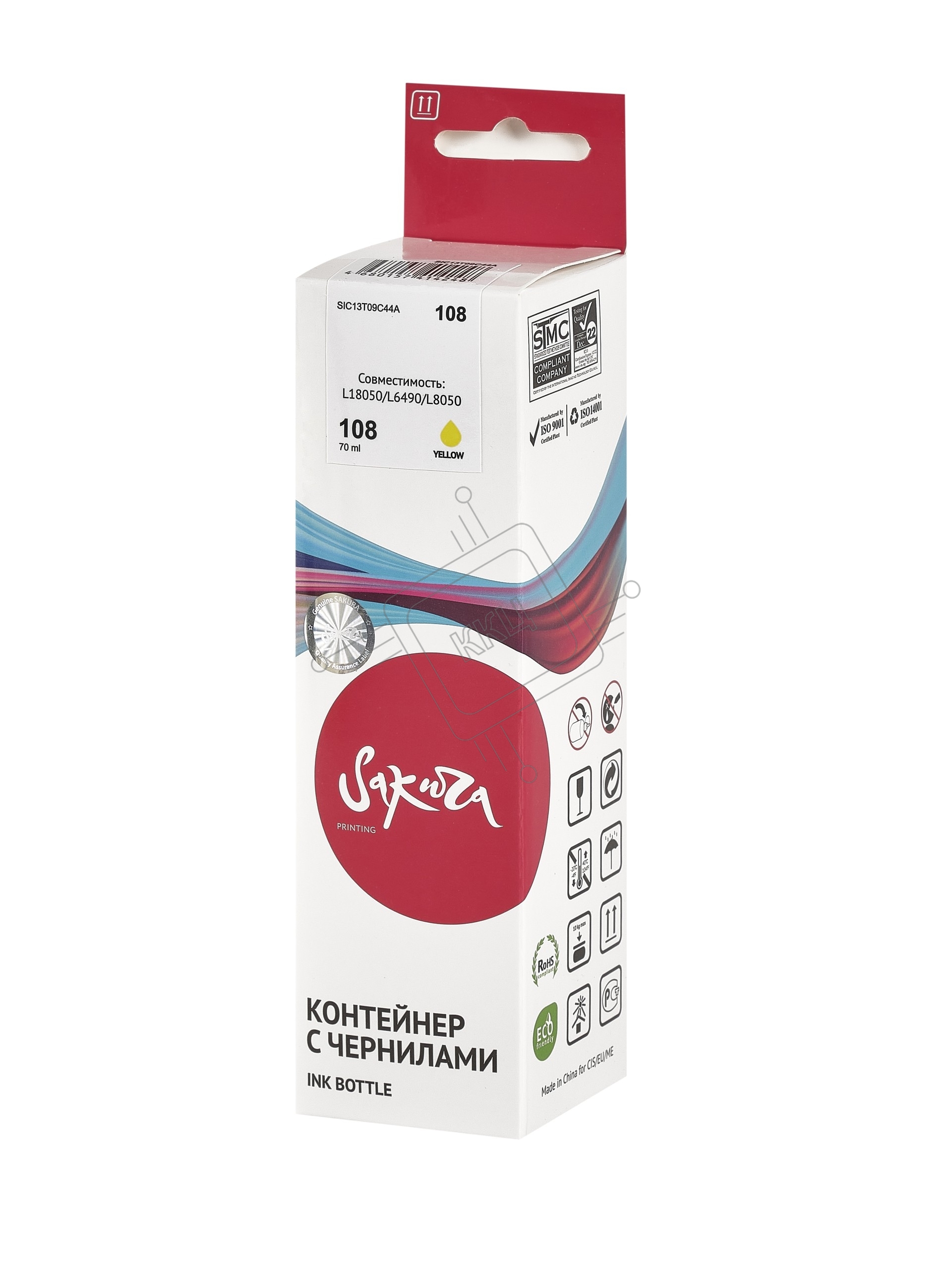 Контейнер с чернилами Sakura C13T09C44A (108 Y) для Epson, желтый, 70 мл.