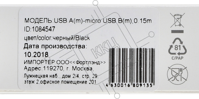 Кабель Digma USB A (m) micro USB B (m) 0.15м черный