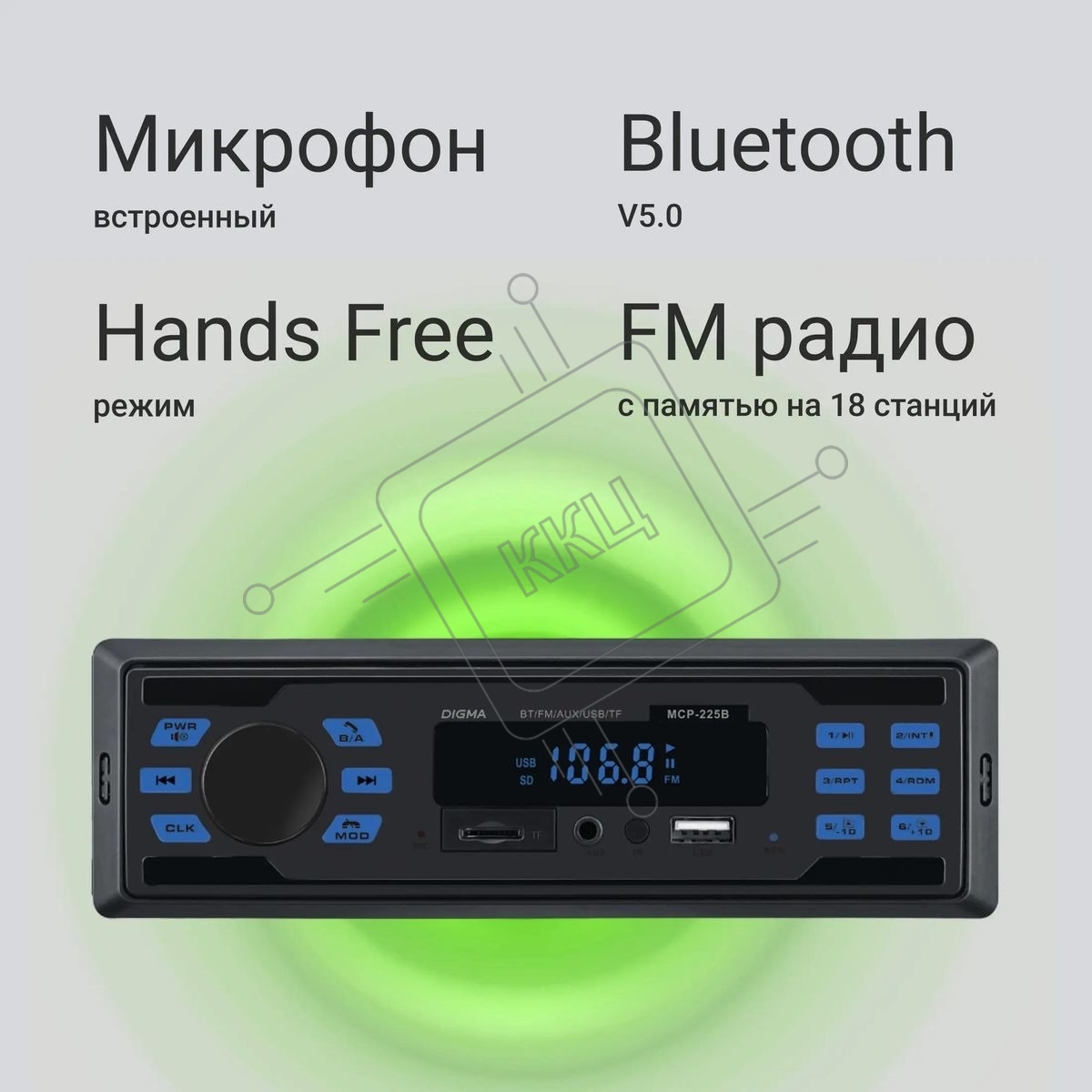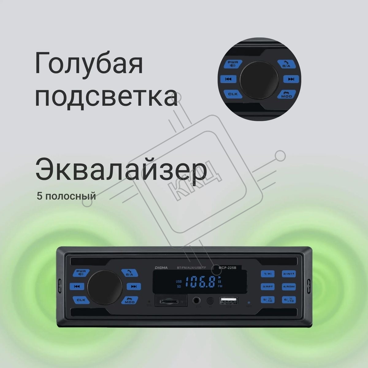 Автомагнитола Digma MCP-225B 1DIN 4x45Вт 2