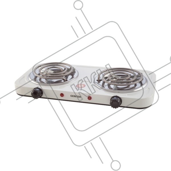 Плита настольная электрическая Centek CT-1509 белый, 2 кВт, ТЭН, конфорки - 2, эмаль, поворотные переключатели