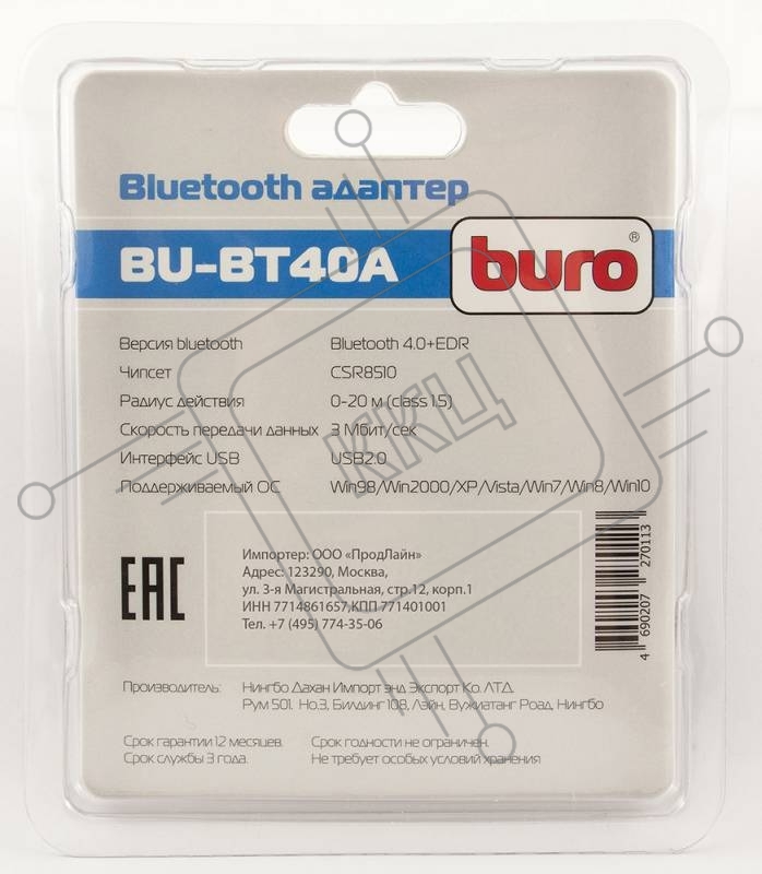 Адаптер USB Buro BU-BT40A Bluetooth 4.0+EDR class 1.5 20м черный