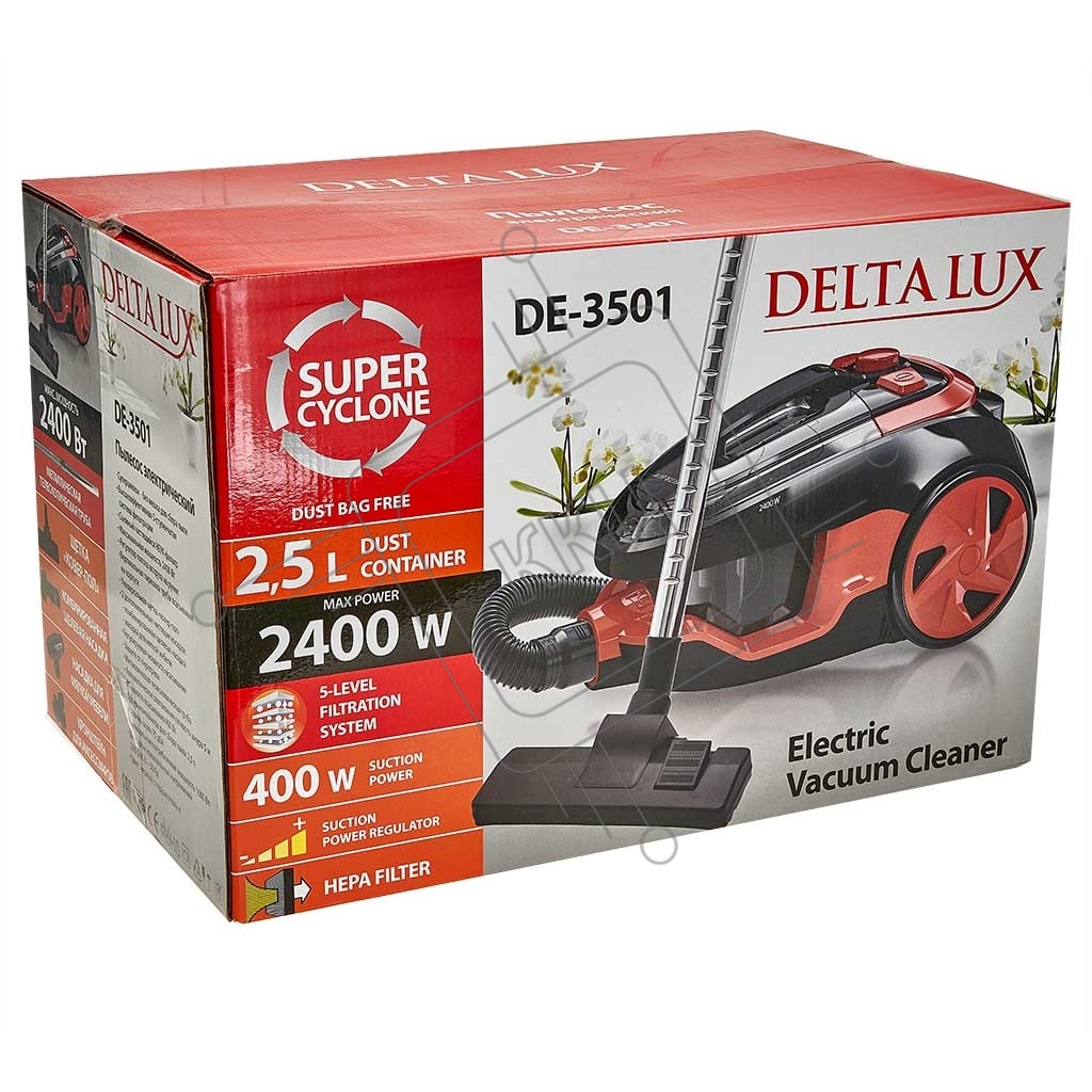 Пылесос DELTA LUX DE-3501 СУПЕР-ЦИКЛОН, черный с терракот