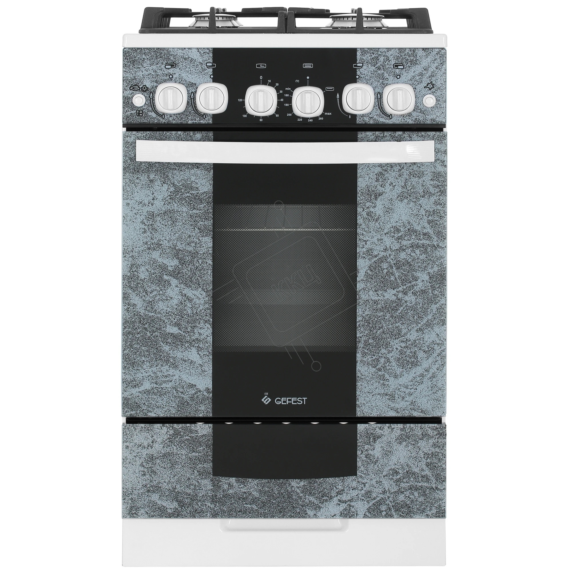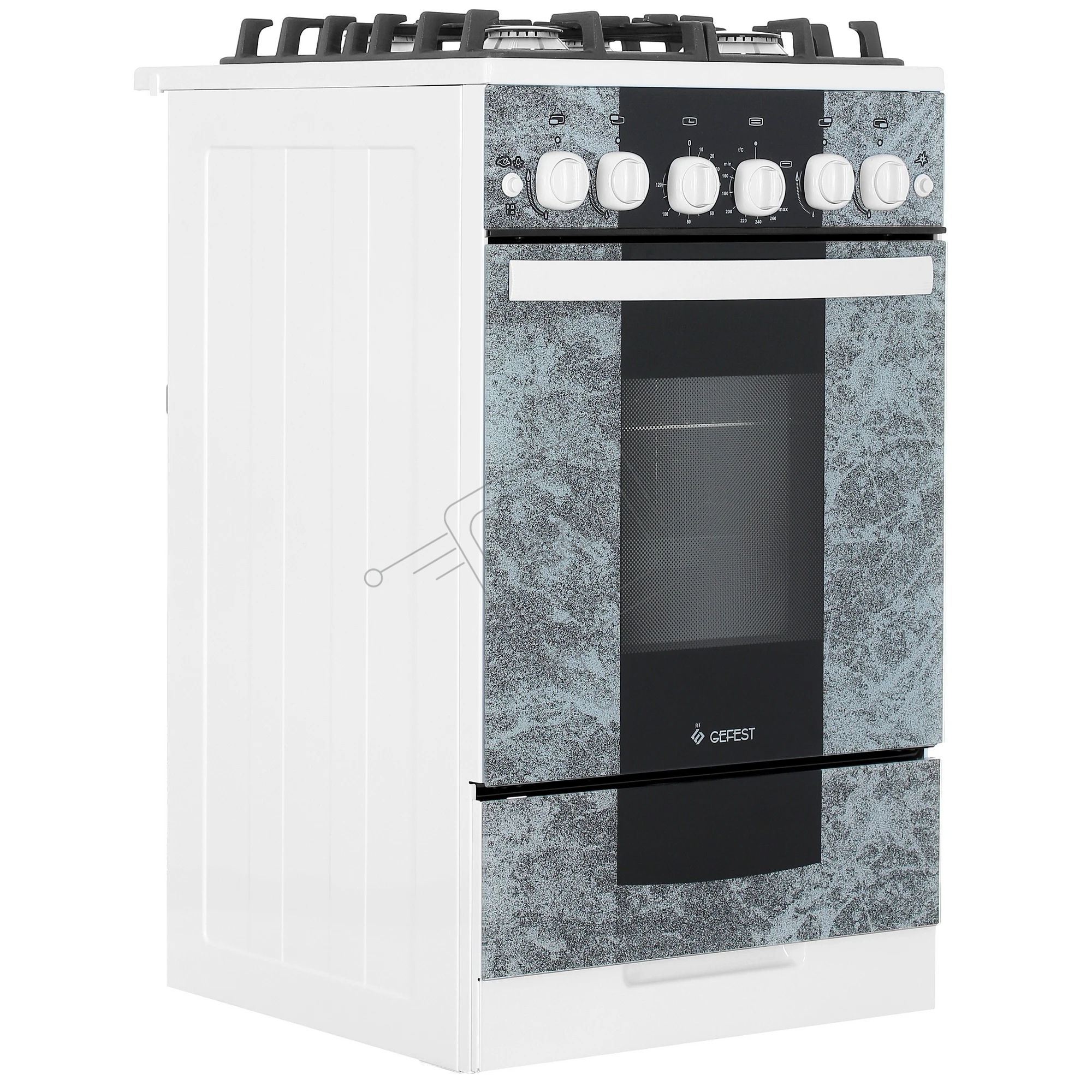 Плита газовая Gefest 5500-02 0113 мрамор, конфорок 4 шт, духовка 52 л, 50 см x 85 см x 58.5 см