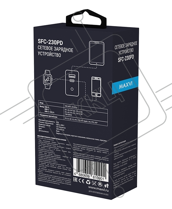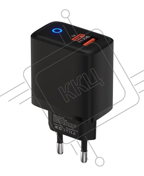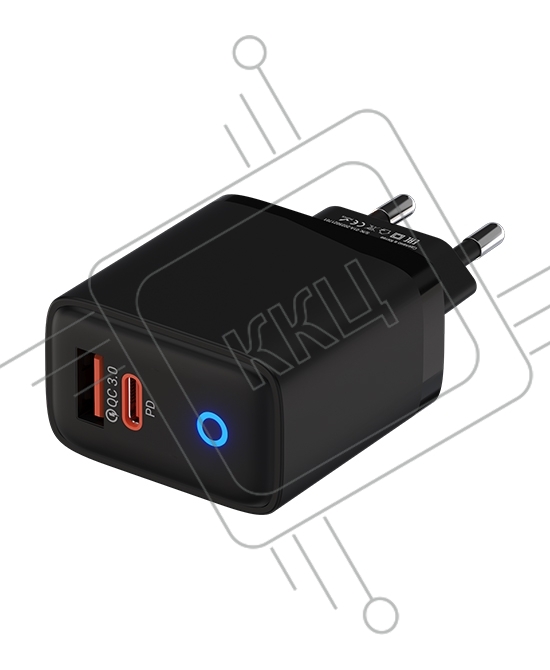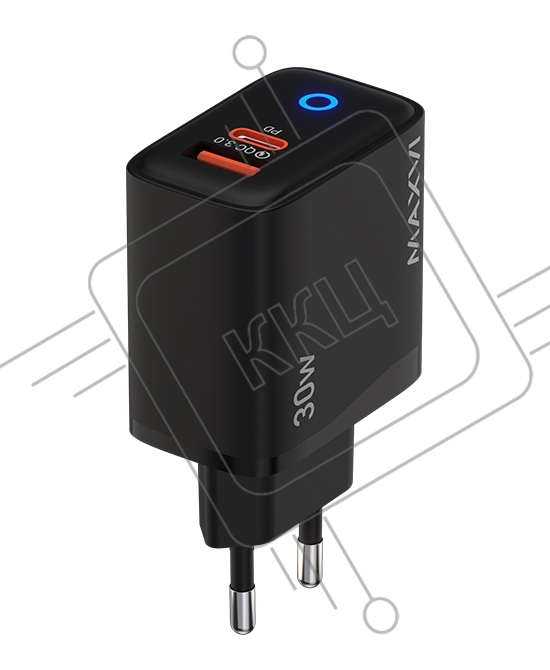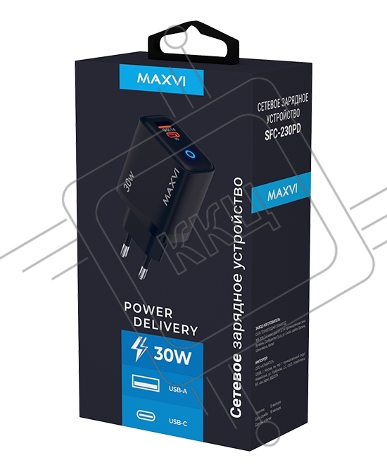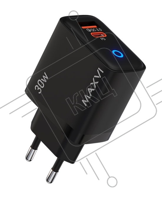 Сетевое зарядное устройство Maxvi SFC-230PD Type-C\USB 30W PD QC3.0 черный (индикатор заряда)