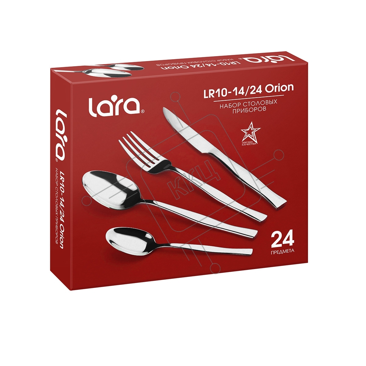 Набор столовых приборов LARA LR10-14/24 ORION 24 пр, зеркальная полировка, остр. вилка, нож для стейка