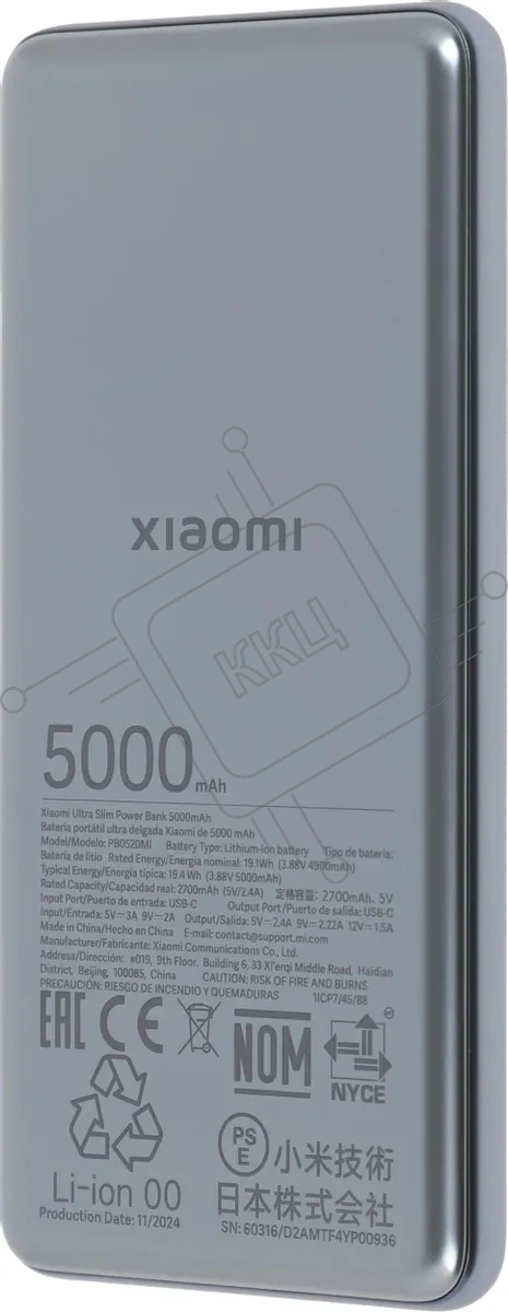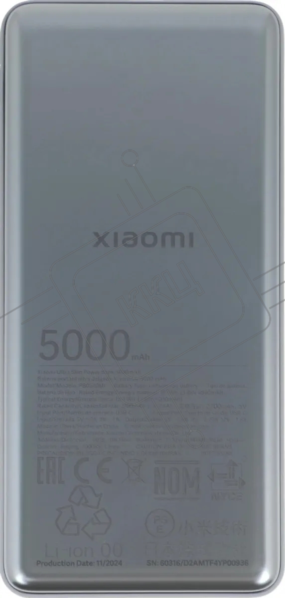 Портативный аккумулятор Xiaomi Ultra Slim 5000mAh QC/PD 20W 2.4A USB-C серый (BHR9535GL)
