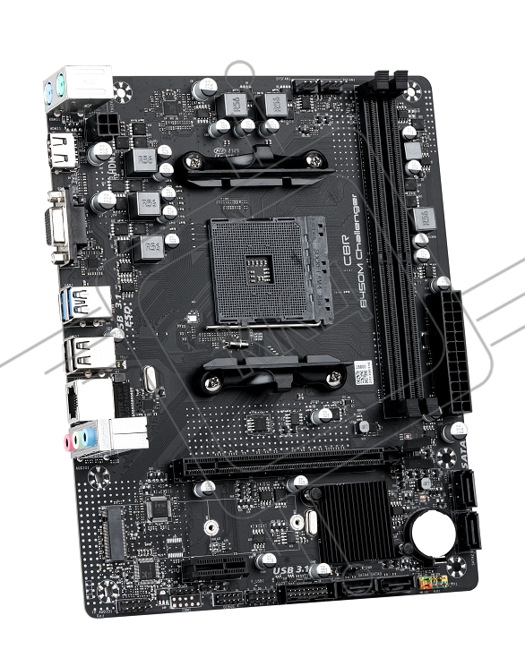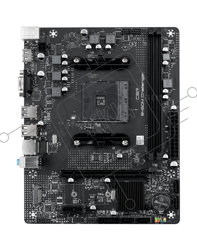 Материнская плата CBR B450M Challenger, AM4, AMD B450, 2xDDR4, 4xSATA, 1xM.2, 1xPCIe 3.0 x16, 1xPCIe x1, 1xHDMI, 1xVGA, 1x1Gb LAN, 2xUSB 2.0, 2xUSB 3.2 Gen 1, 3x3.5 мм, 7.1, mATX