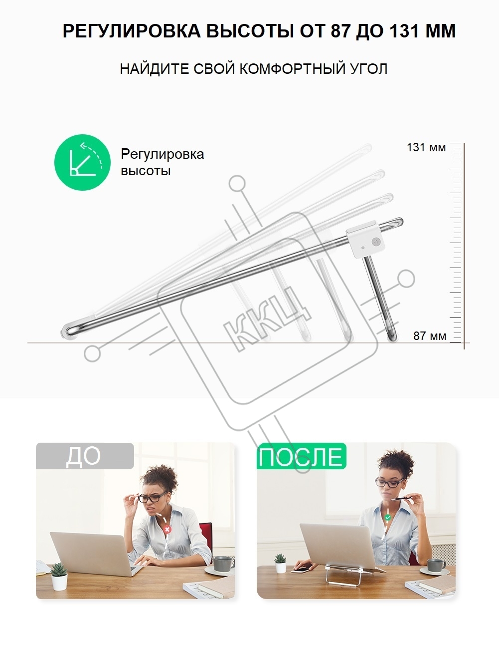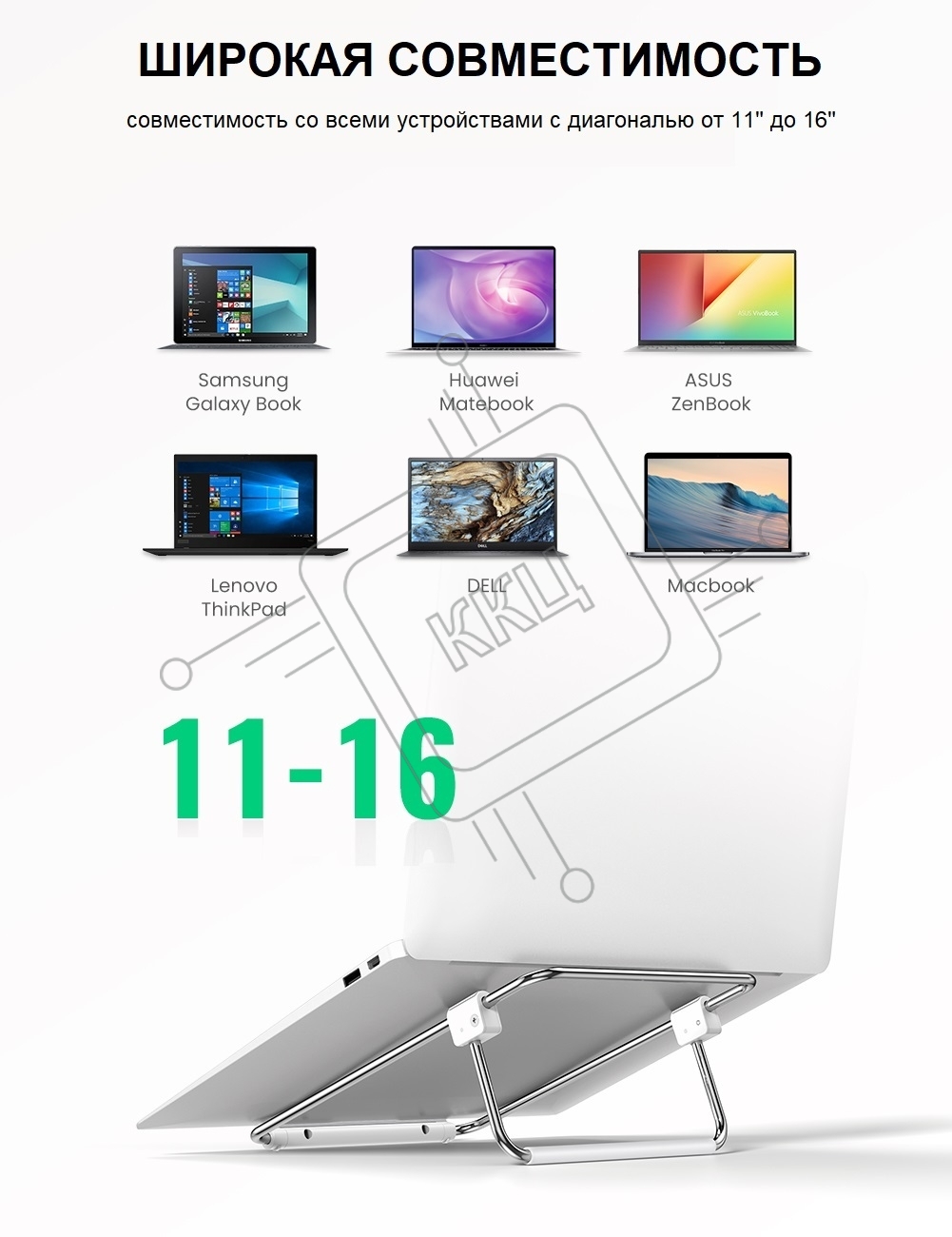 Алюминиевая регулируемая подставка для ноутбука Ugreen LP230-80348 Silver (80348)