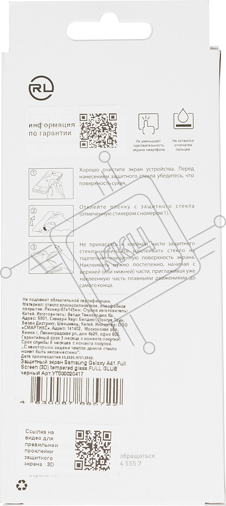 Защитное стекло для экрана Redline для Samsung Galaxy A41 3D антиблик. 1шт. (УТ000020417)