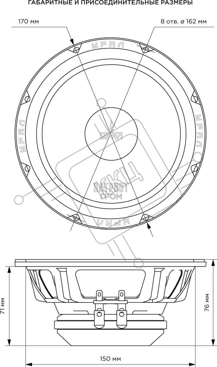 Колонки автомобильные Ural АС-ПТ165.2 ГРОМ (без решетки) 600Вт 99.7дБ 4Ом 16.5см (6 1/2дюйм) (ком.:1кол.) широкополосные однополосные