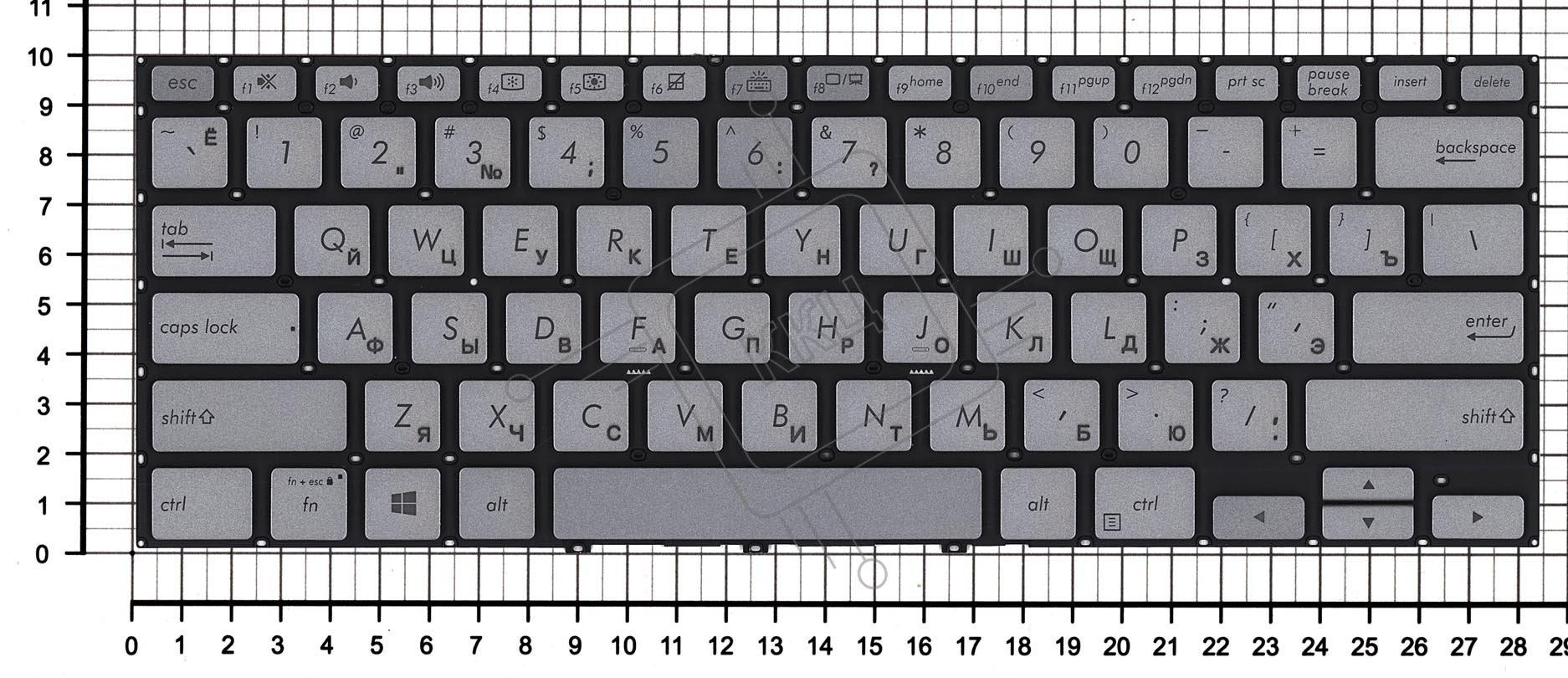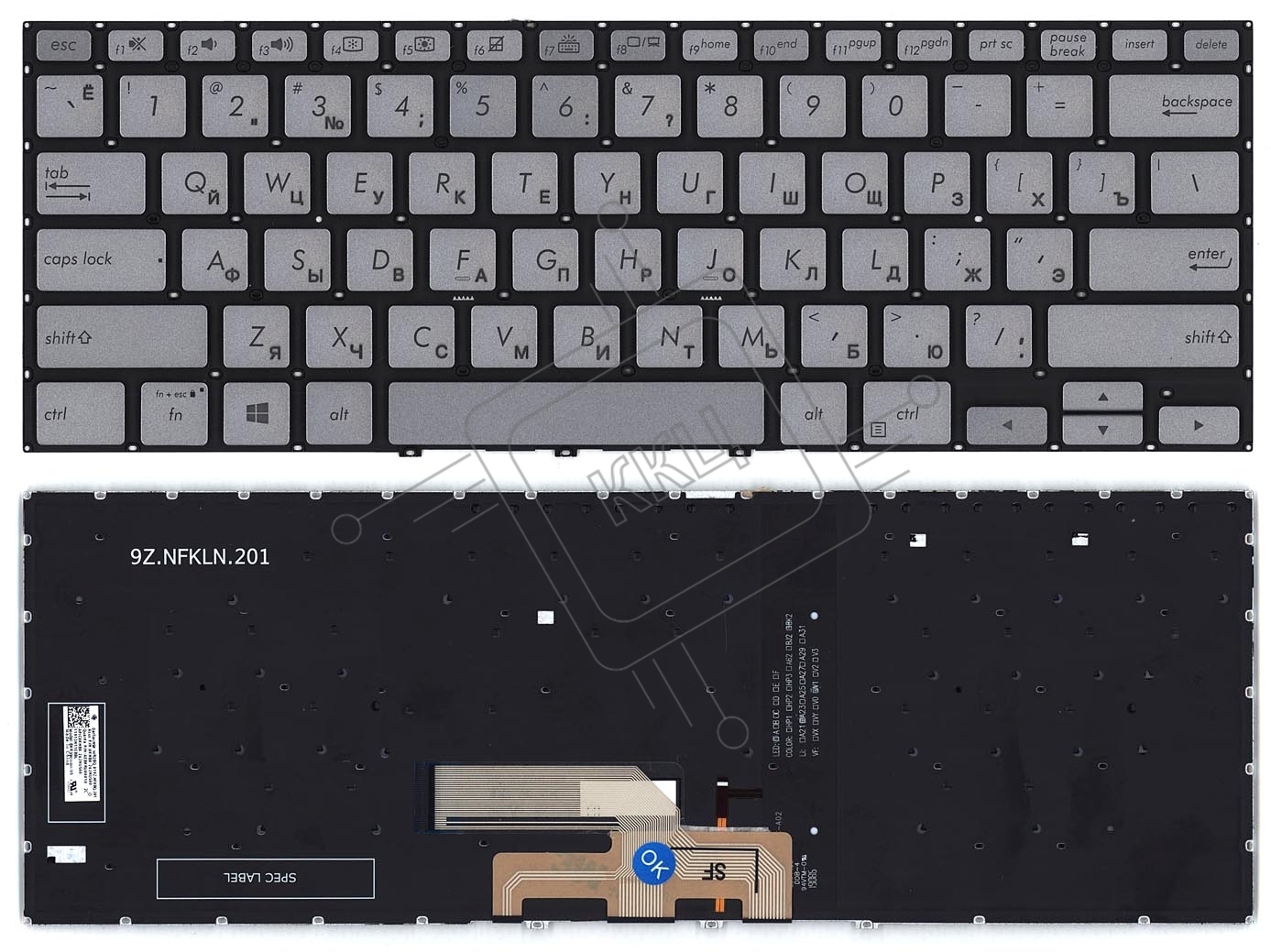 Клавиатура для ноутбука Asus Zenbook Flip 14 UX462DA серебристая с подсветкой