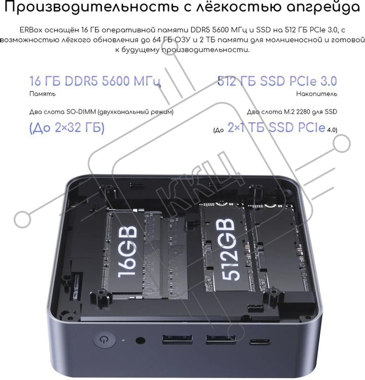 Неттоп Acer Gadget E10 ERBox Ryzen 7 8745HS (3.8) 16Gb SSD512Gb UHDG Windows 11 Pro 2xGbitEth WiFi BT 120W черный (1747236)