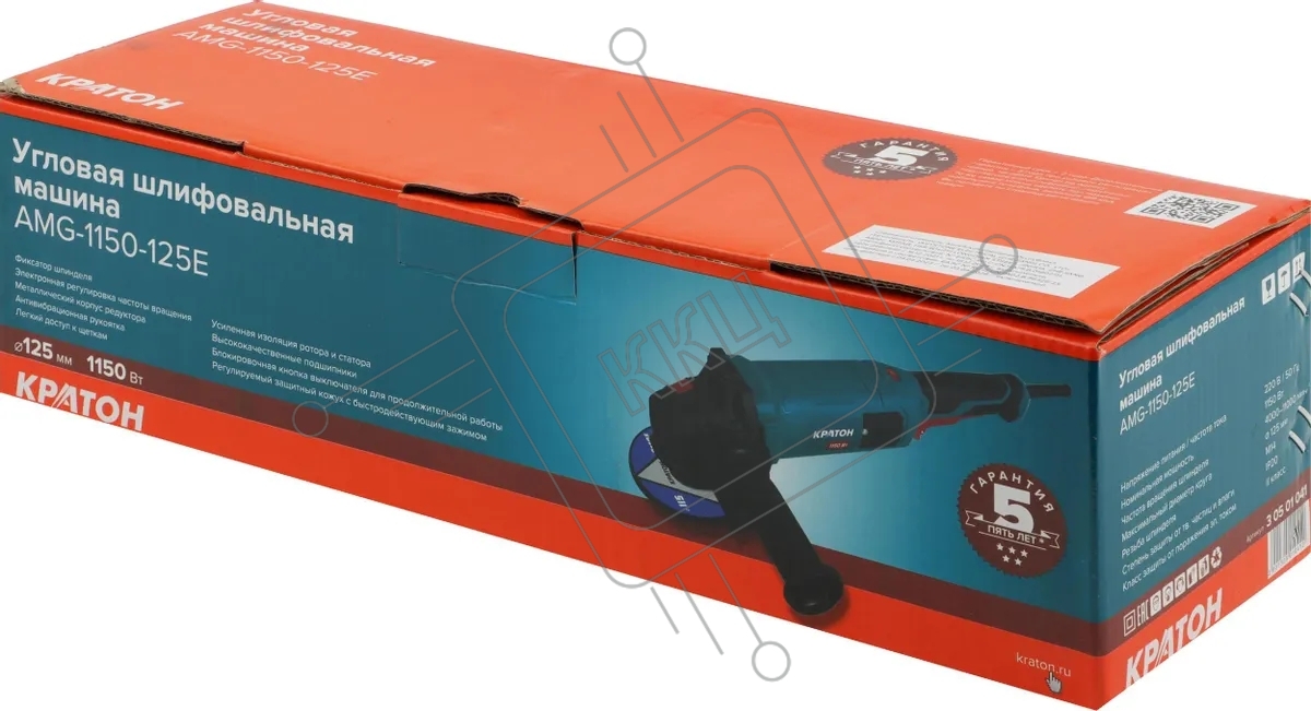 Углошлифовальная машина Кратон AMG-1150-125E 1100Вт 11000об/мин рез.шпин.:M14 d=125мм (3 05 01 041)