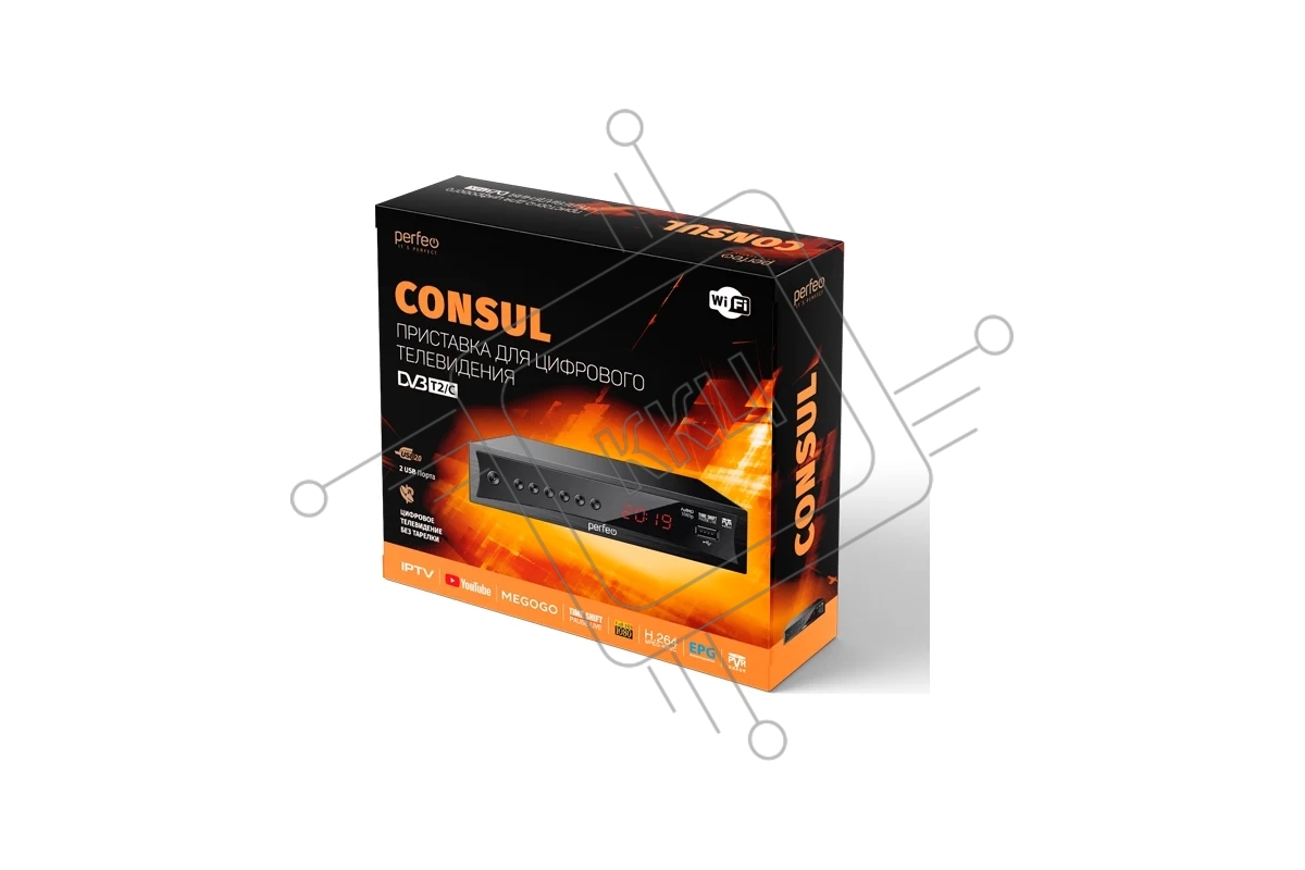 Приставка Perfeo (PF-A4413) CONSUL DVB-T2/C для цифр.TV, Wi-Fi, IPTV, HDMI, 2 USB, DolbyDigital, пульт ДУ