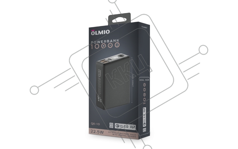 Внешний аккумулятор OLMIO QX-10, 10000mAh, 22.5W, QuickCharge3.0/PowerDelivery, LCD, графитовый