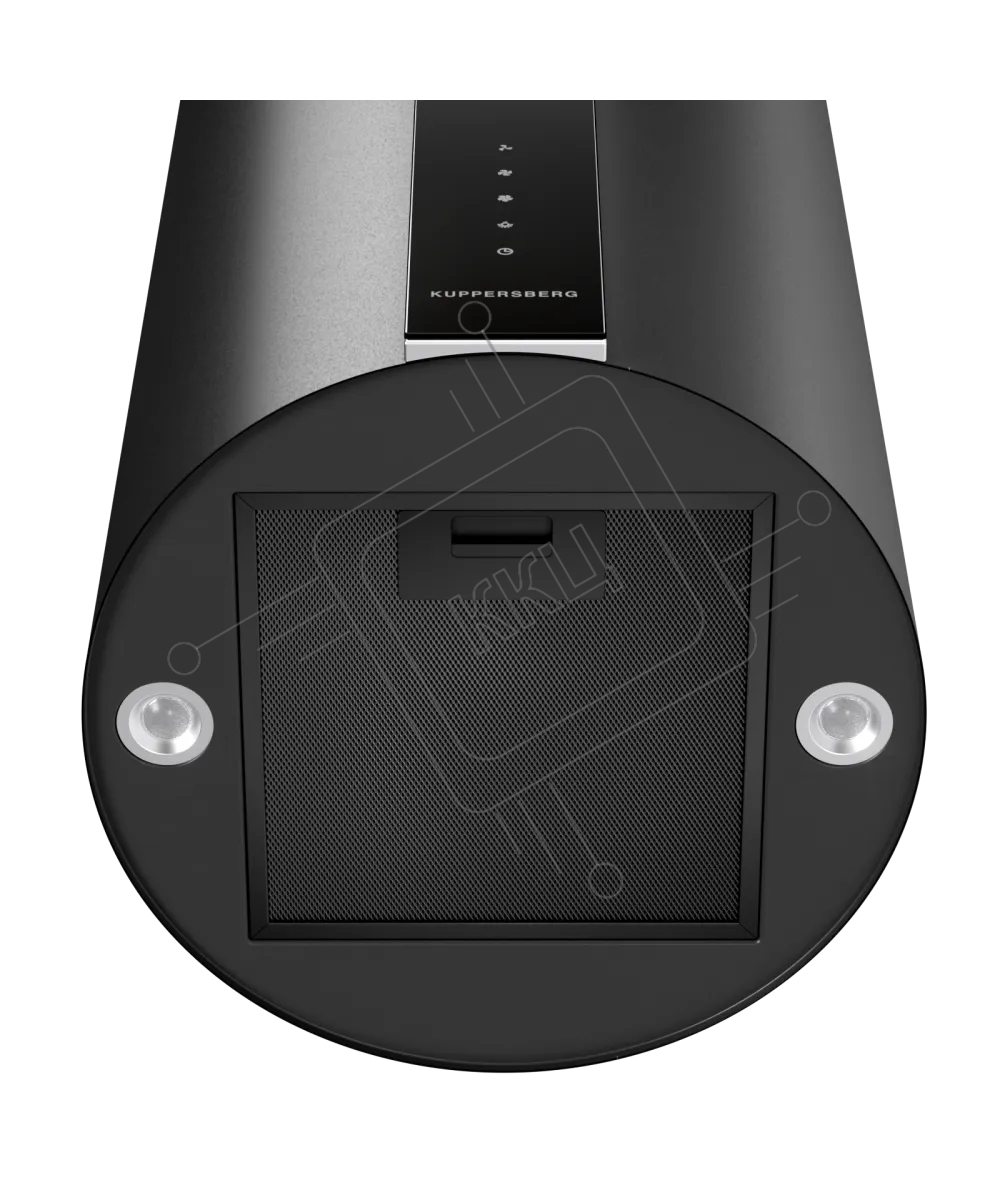 Вытяжка Kuppersberg, цилиндрическая, настенная, 35 см, сенсорное управление, таймер, отвод/рециркуляция, 3 скорости, производительность 850 м3/ч, LED освещение, обратный клапан, уровень шума 68 дБ, угольный фильтр CF110 (опция), цвет черный