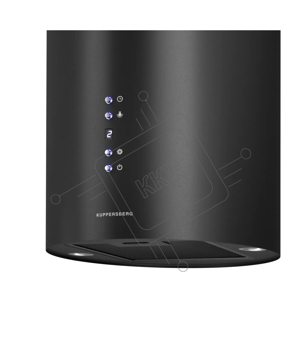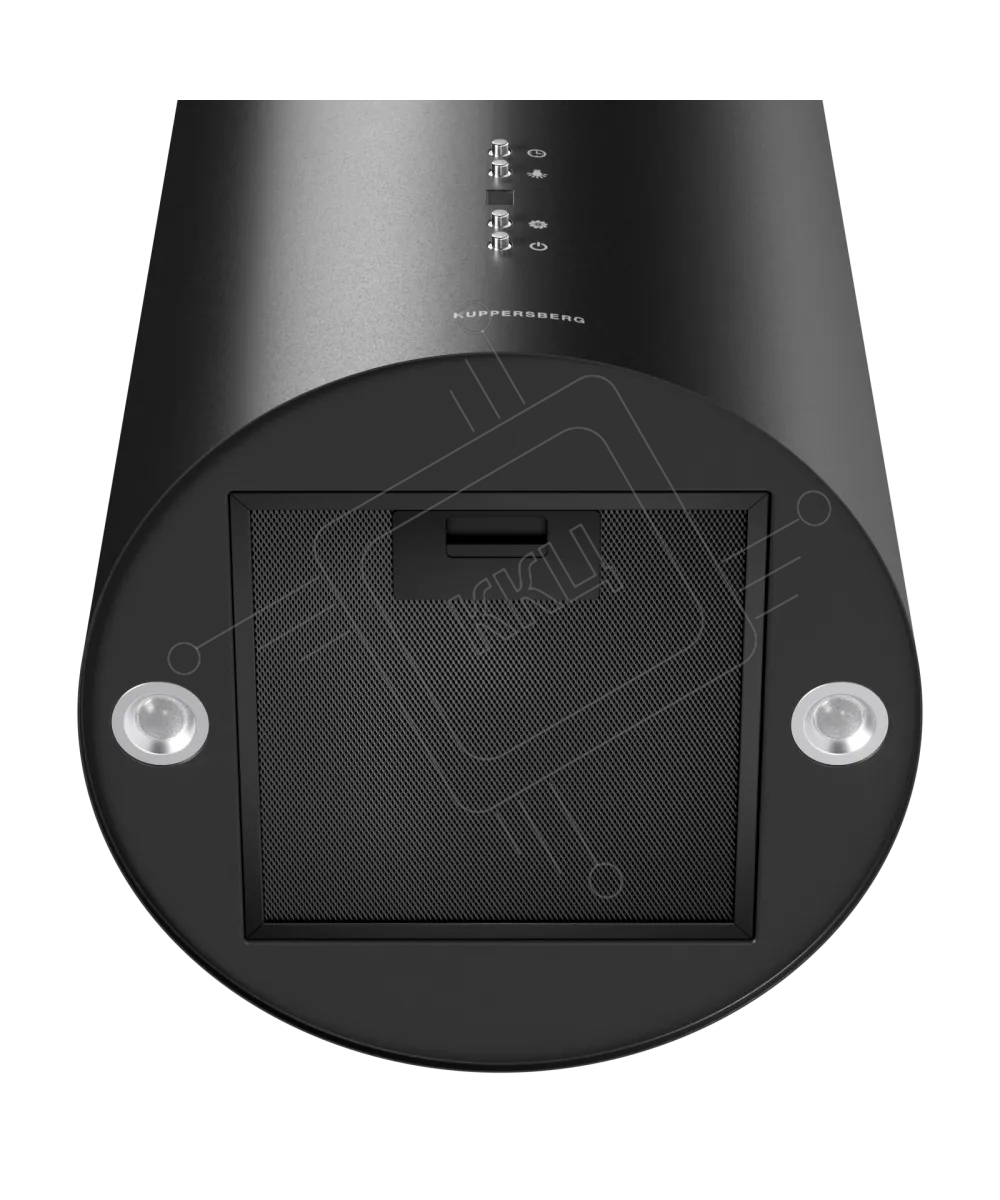 Вытяжка Kuppersberg, цилиндрическая, настенная, 35 см, электронное кнопочное управление, таймер, отвод/рециркуляция, 3 скорости, производительность 850 м3/ч, LED освещение, обратный клапан, уровень шума 68 дБ, угольный фильтр CF110 (опция), цвет черный