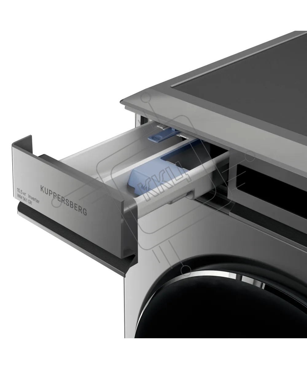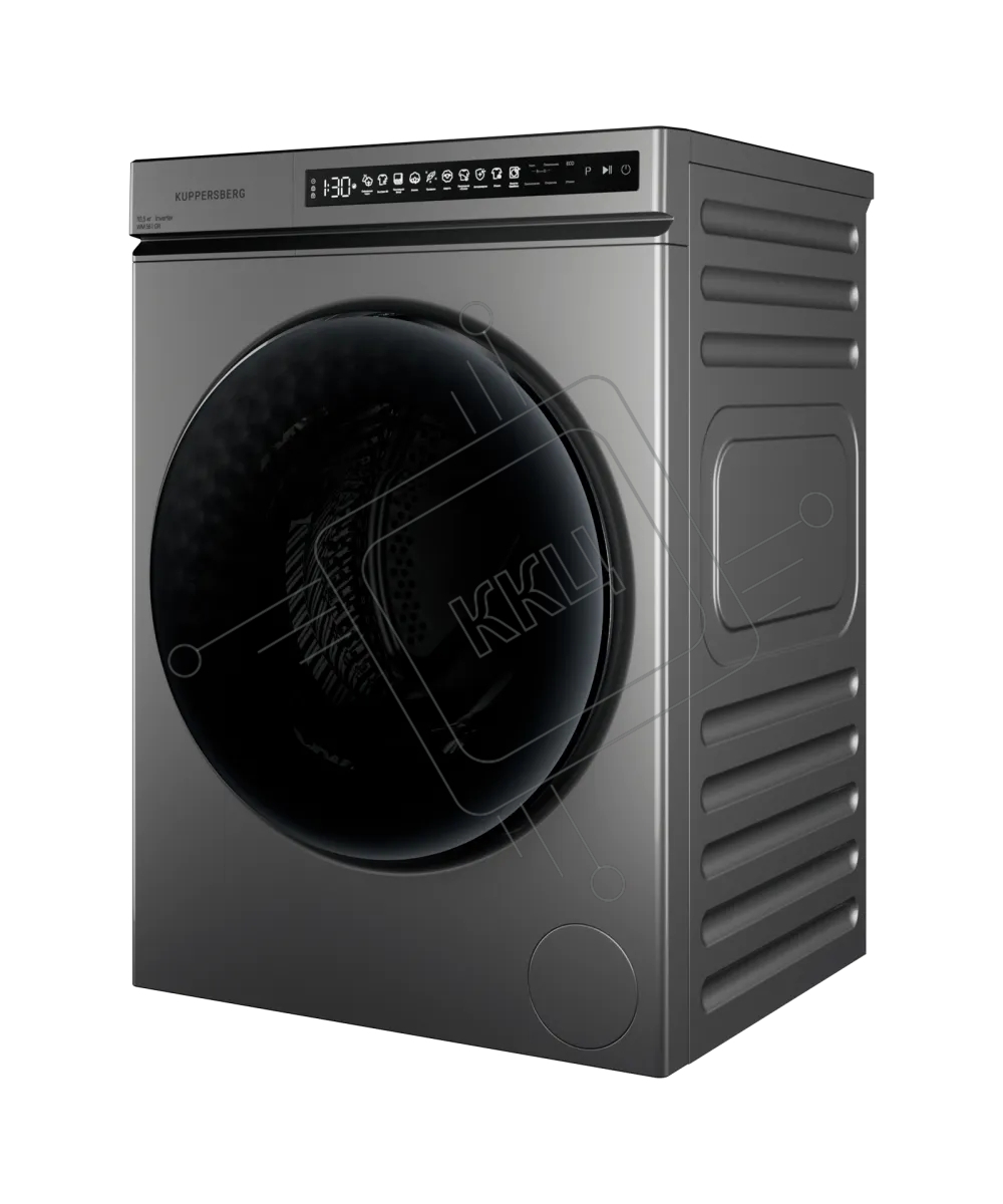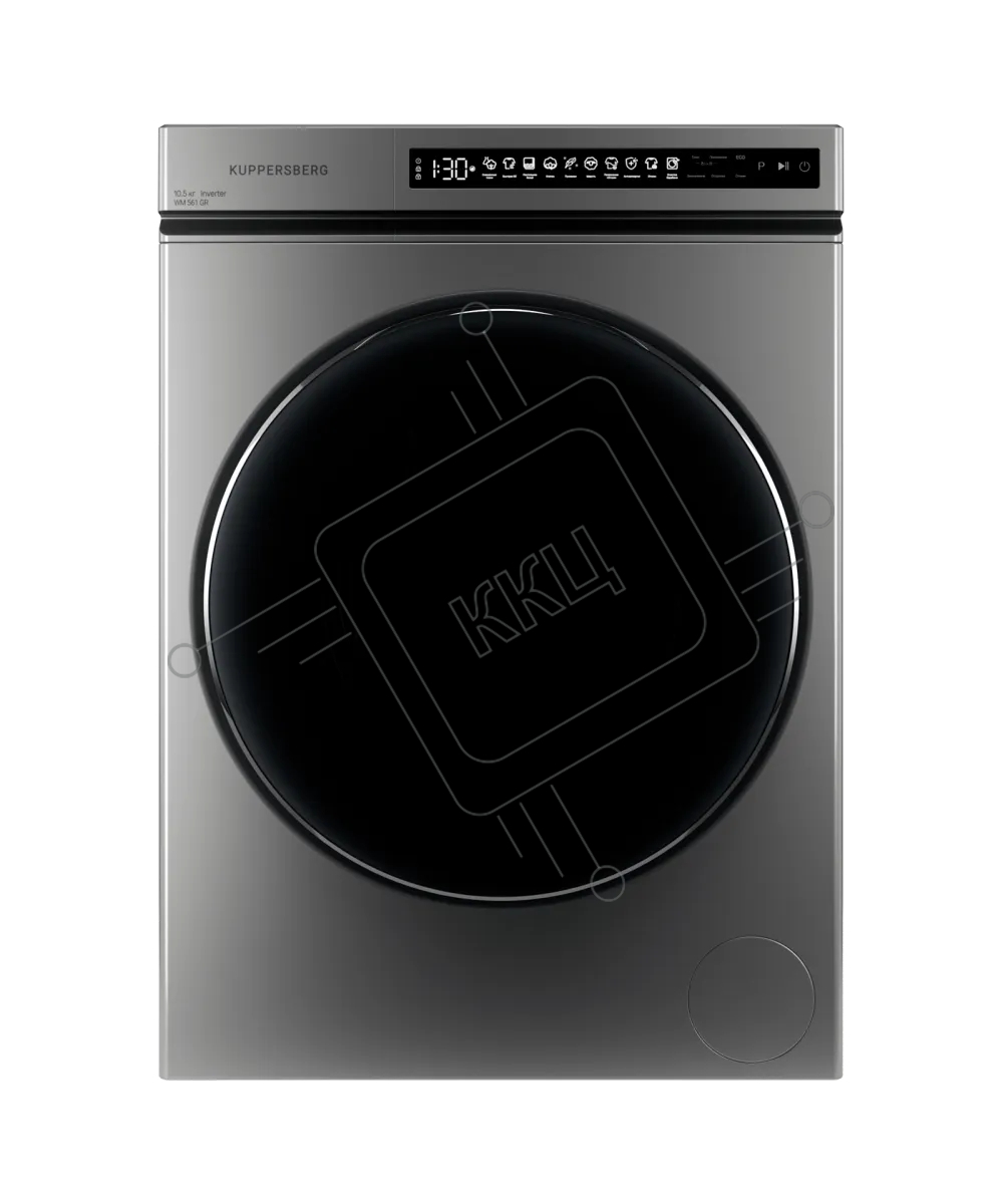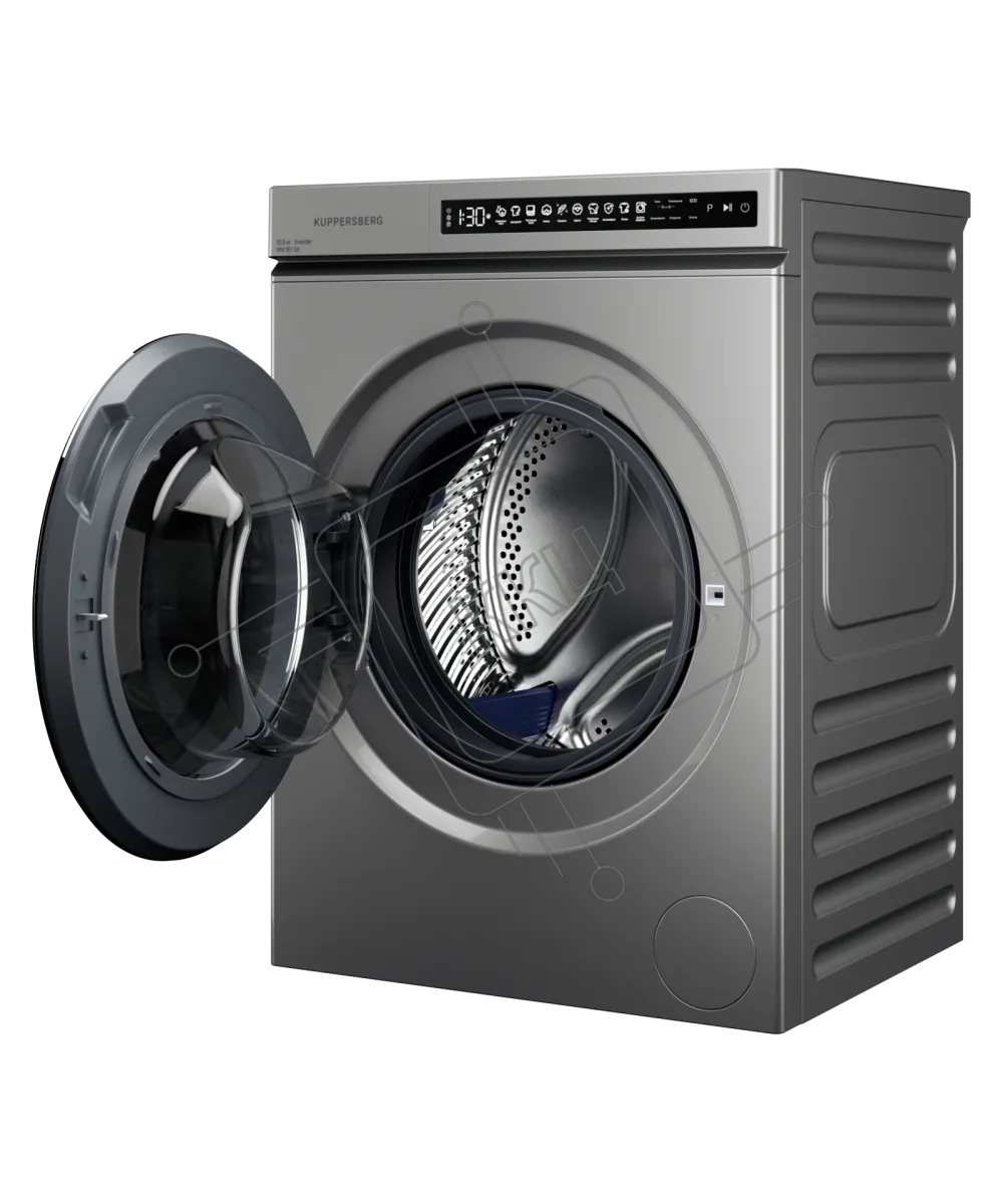 Стиральная машина Kuppersberg, отдельностоящая, глубина 62 см, 10 кг, 10 программ, 1200 об/мин, инверторный двигатель, отложенный старт, самодиагностика, замачивание, LED дисплей, сенсорное управление, энергоэффективность А+++, цвет серый