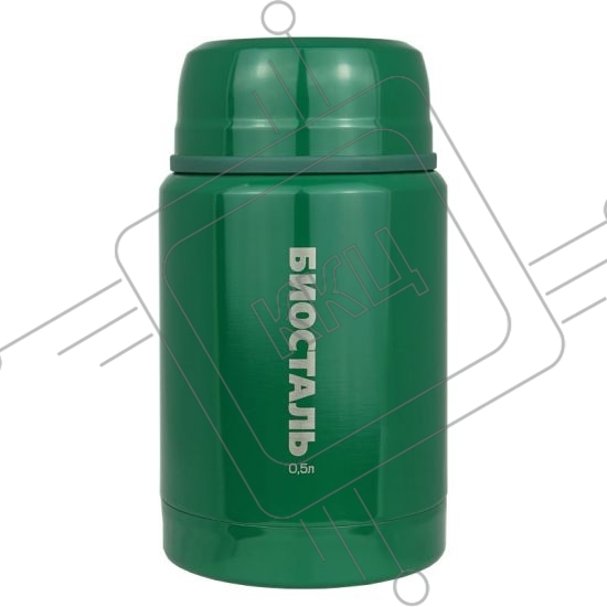 Термос "БИОСТАЛЬ-ОХОТА"с широкой горловиной, суповой, С ЛОЖКОЙ, "ЗЕЛЕНЫЙ КЕДР", 0.5