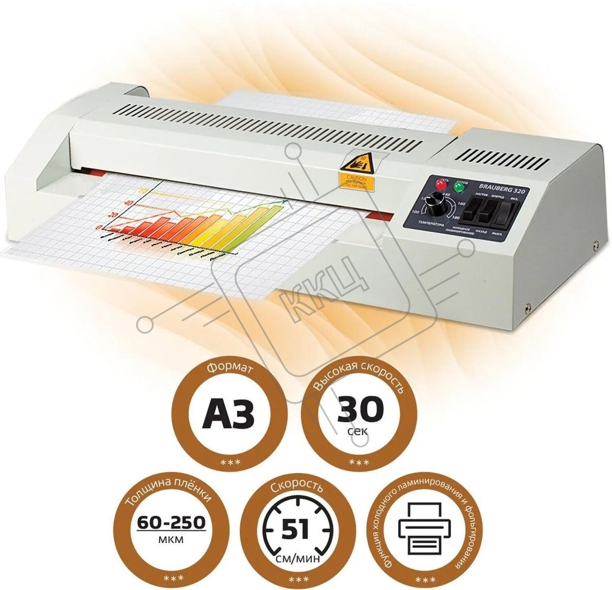 Ламинатор Гелеос FGK 320, А3, 2х250 (пленка 60-250мкм), 600 мм/мин, 4 вала, реверс, хол. ламин., регул. темп., металл. корпус, мах толщина 2мм