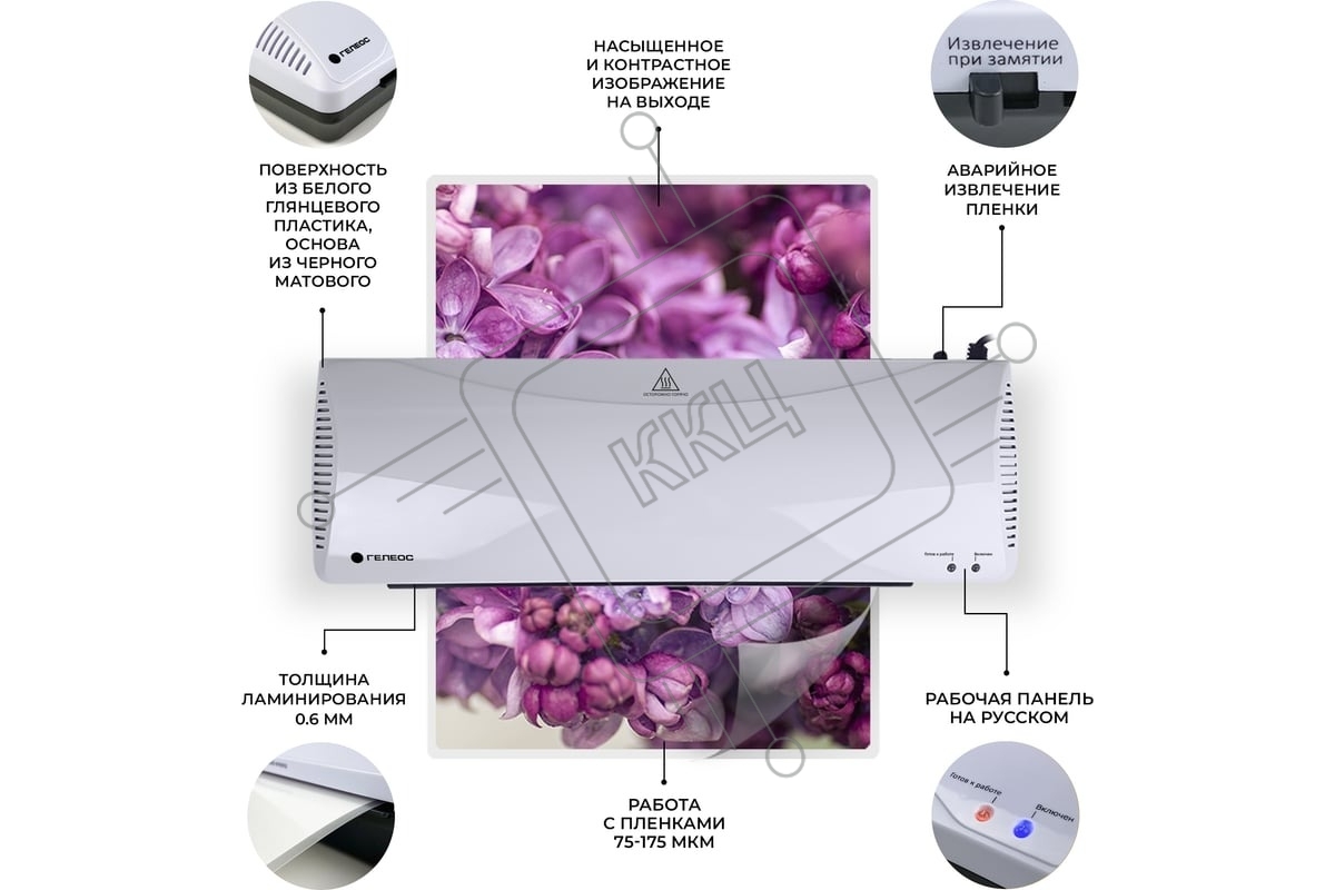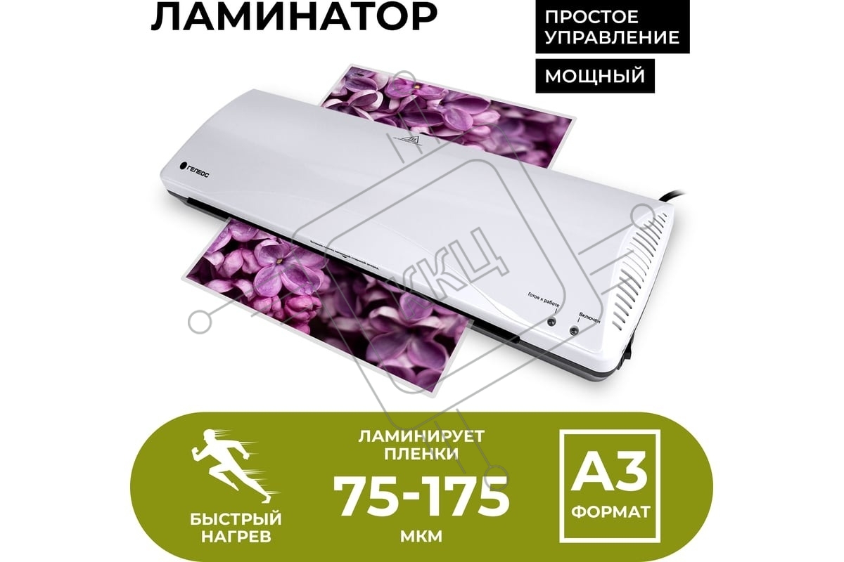 Ламинатор Гелеос ЛМ А3+(БС)А3, 2х175 (пленка 75-175мкм), 300 мм/мин, 2 вала, пласт. корпус, мах толщина 0,6мм, система разжатия валов.