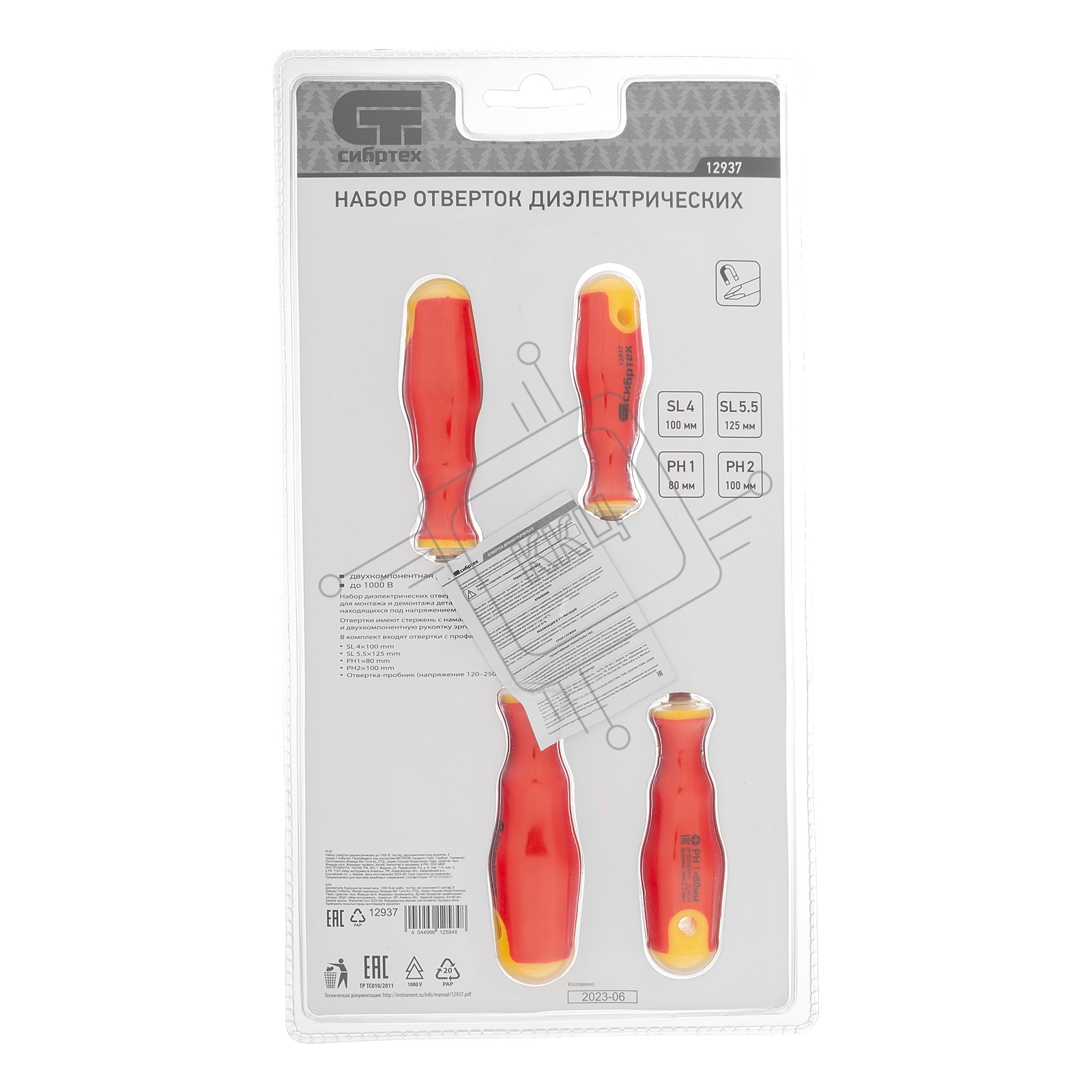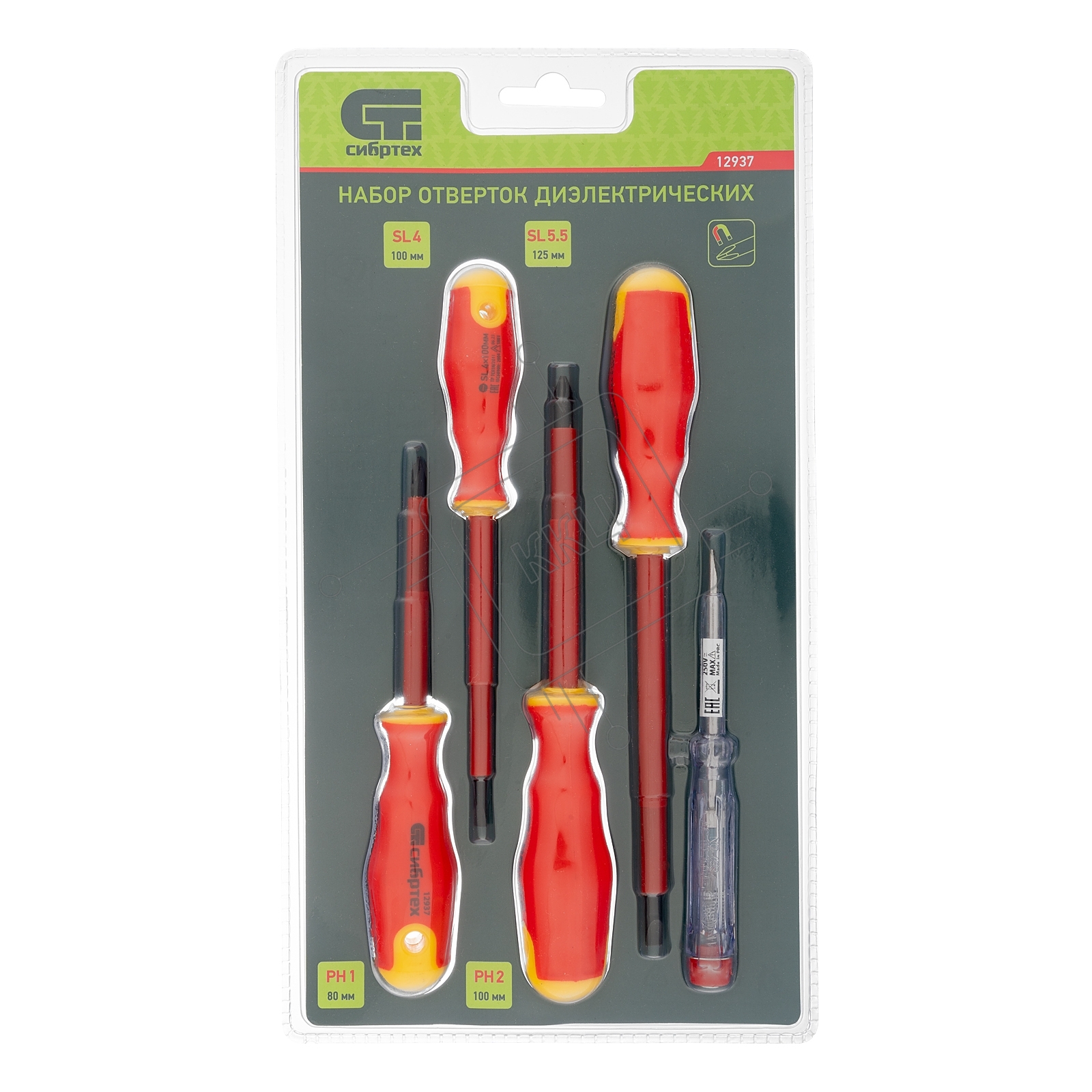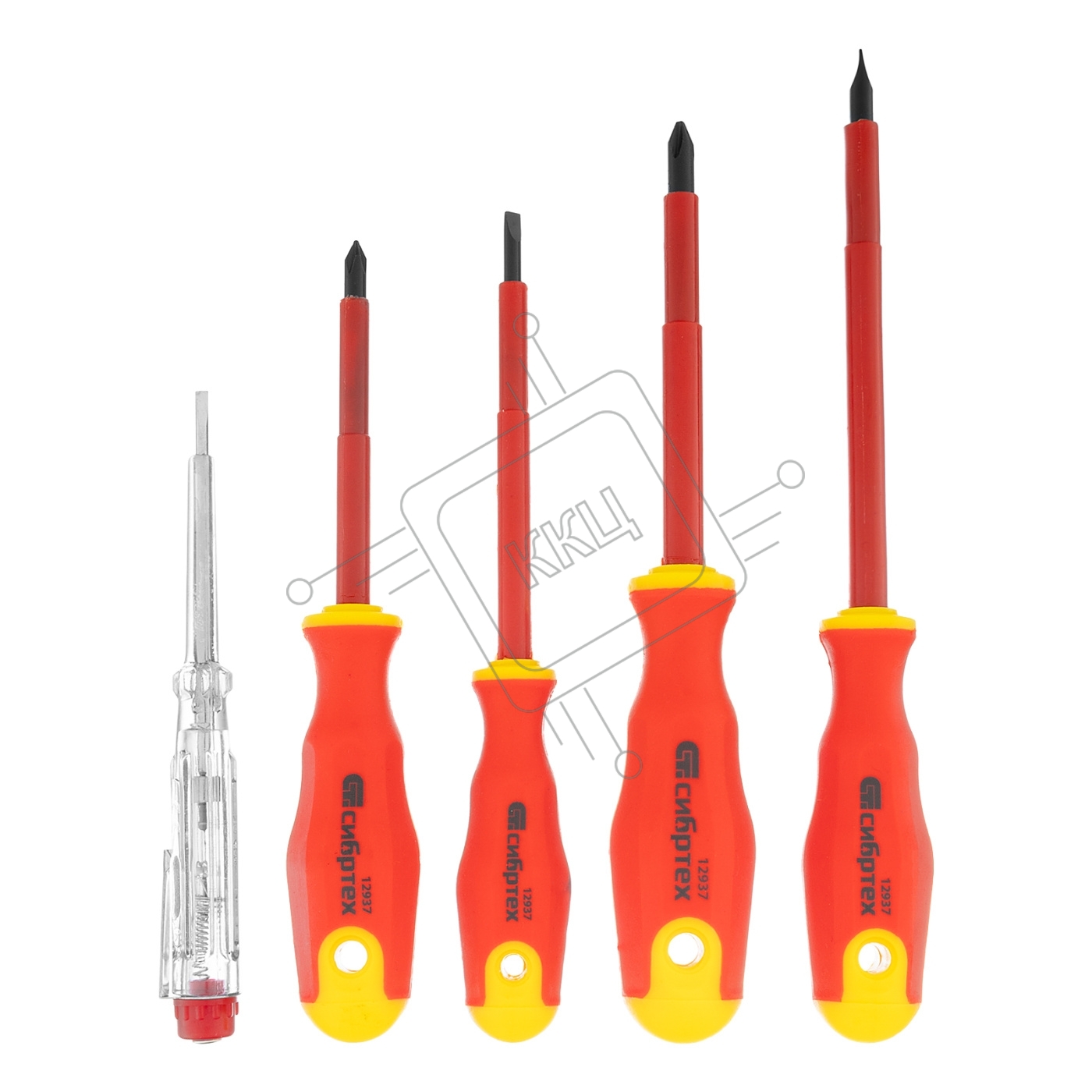 Набор отверток Сибртех диэлектрических до 1000в тестер crv двухкомпонентные рукоятки (5шт.)