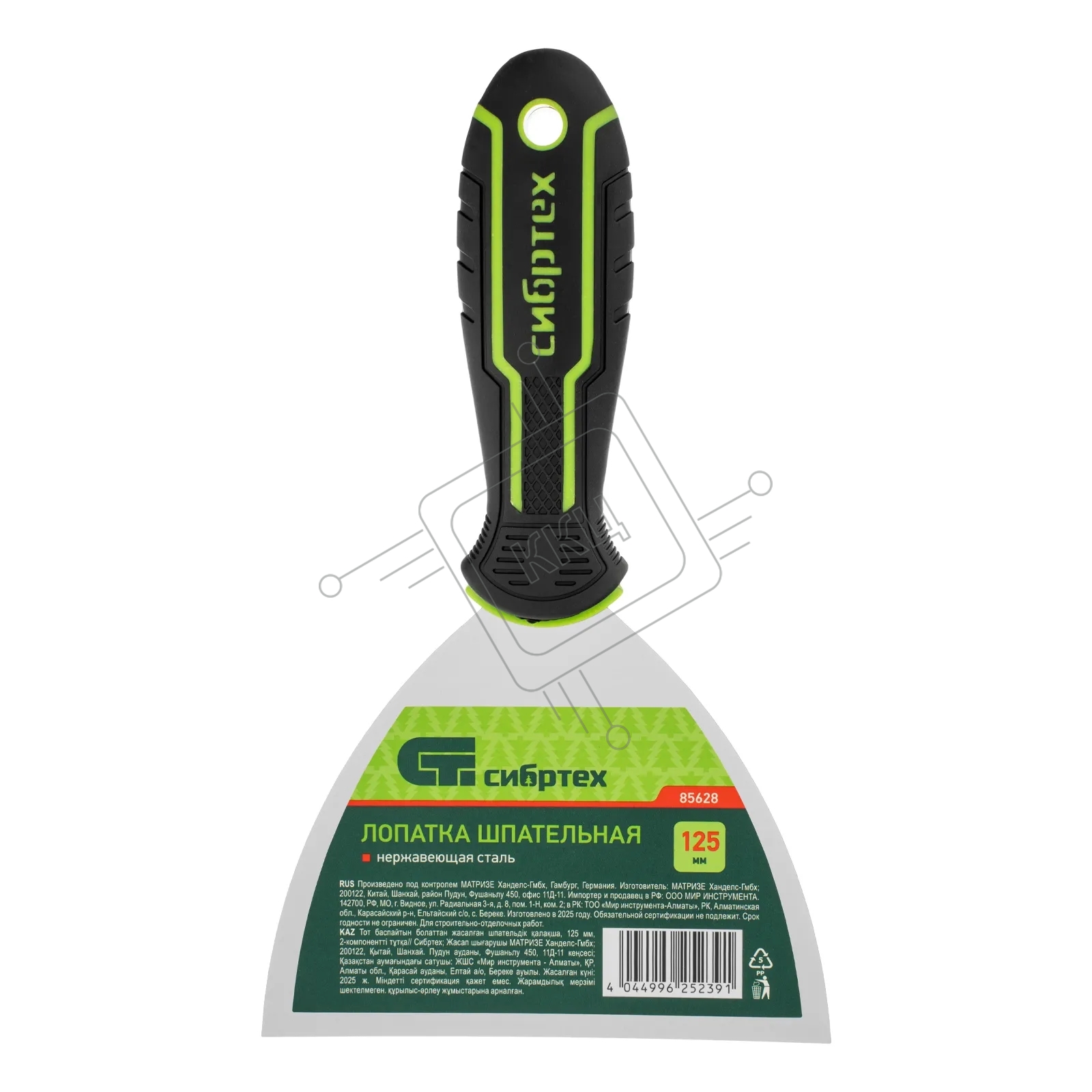 Шпательная лопатка из нержавеющей стали Сибртех 125 мм, двухкомпонентная рукоятка