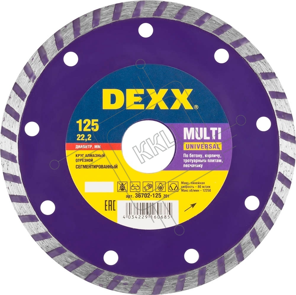 Круг алмазный DEXX 36702-125_z01 турбо сегментированный для УШМ 125х7х22.2мм