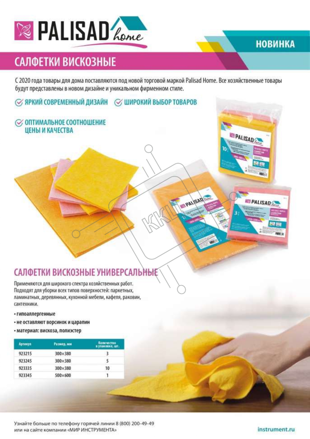 Салфетки вискозные универсальные 300x380 мм, 3 шт., HomePalisad