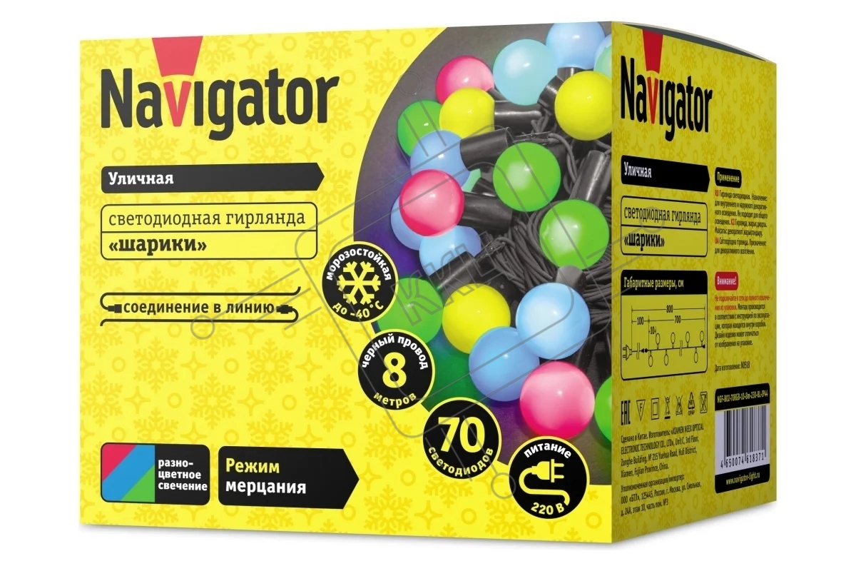 Гирлянда Navigator 61837 NGF-B02-70RGB-10-8m-230-BL-IP44
