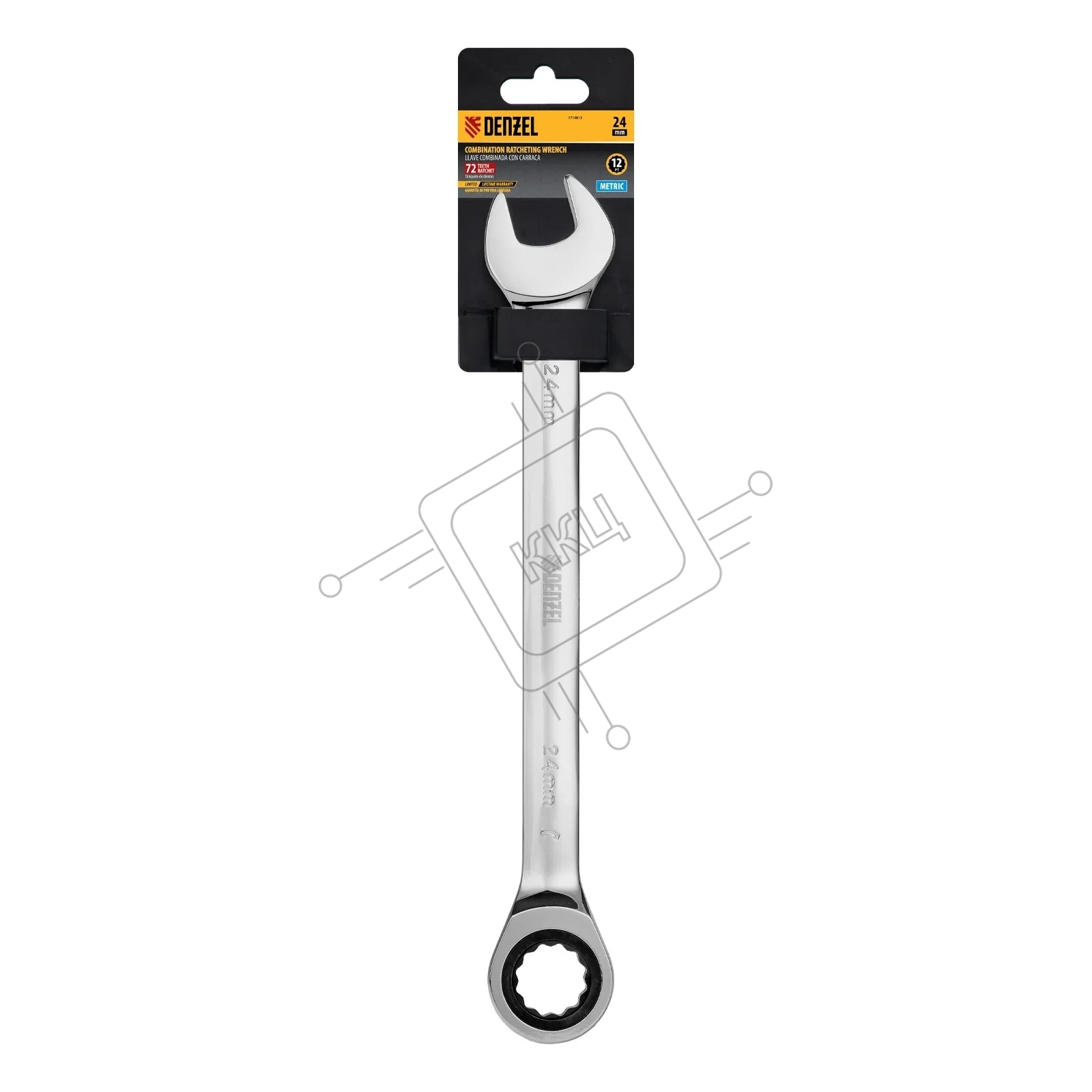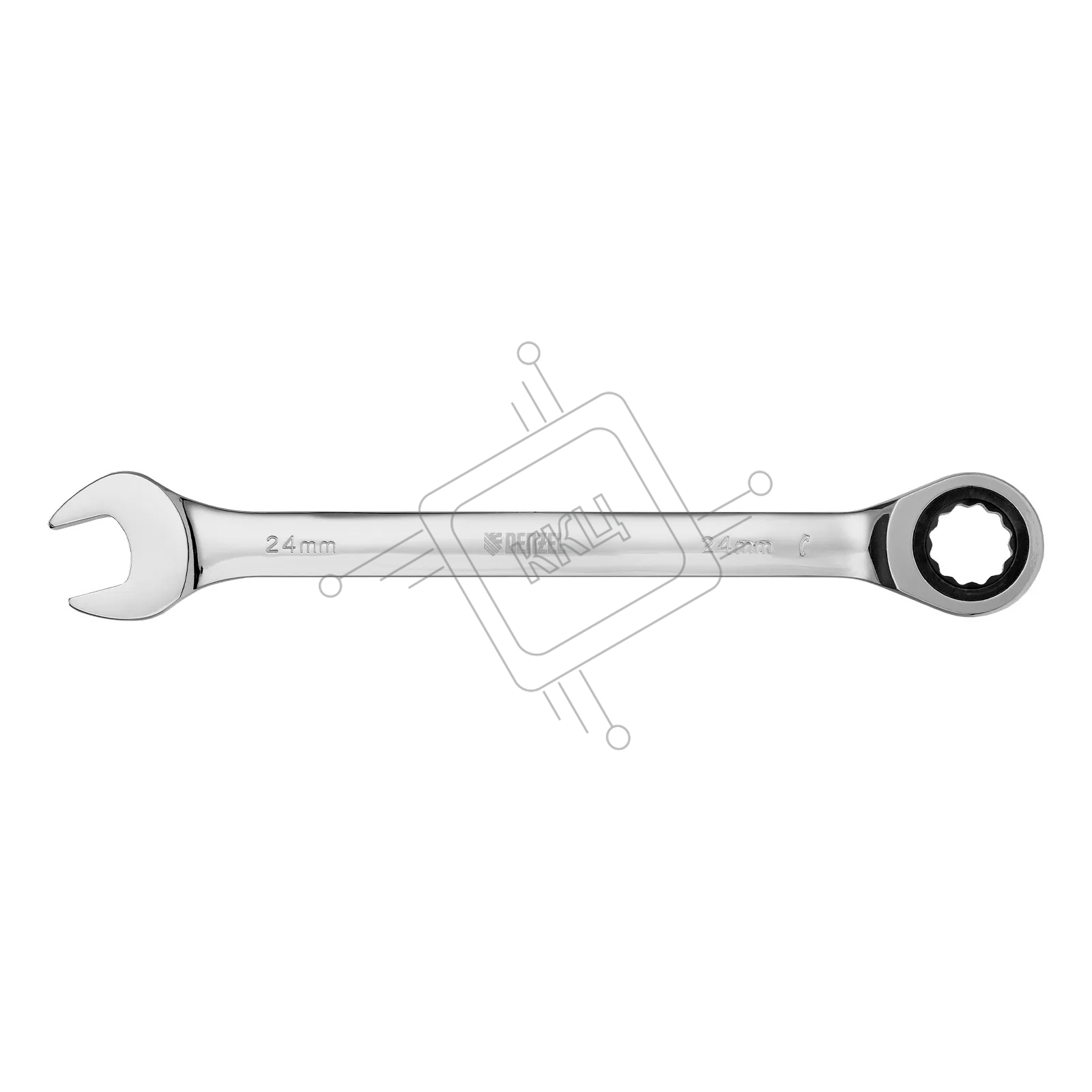 Ключ комбинированный Denzel, с трещеткой, 24 мм