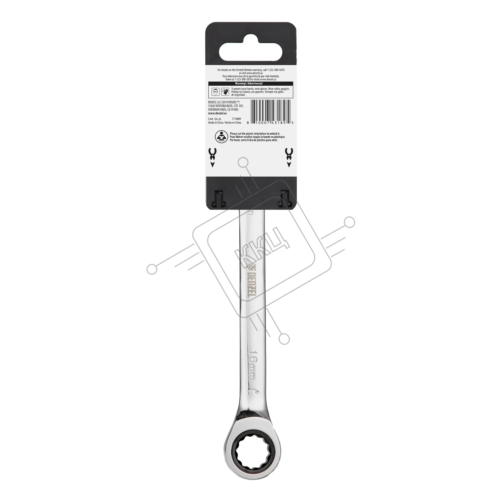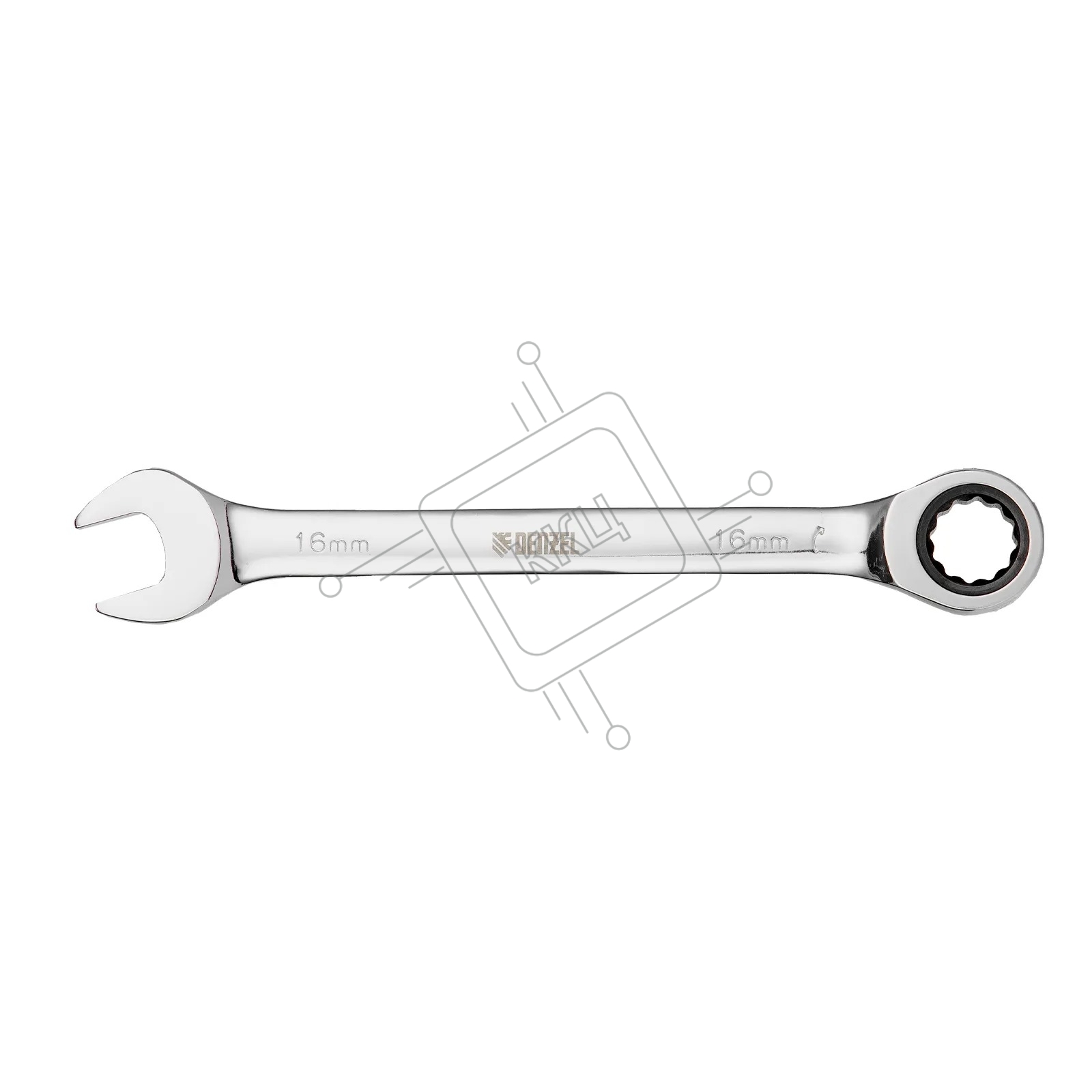 Ключ комбинированный Denzel, с трещеткой, 16 мм