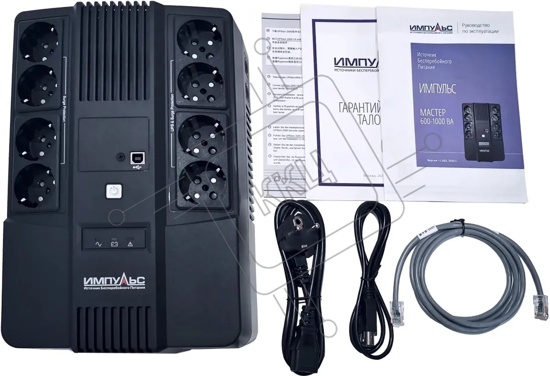 Источник бесперебойного питания Импульс ИБП ИМПУЛЬС МАСТЕР 1000, 1000ВА/600Вт, LED, USB, RJ11/RJ45, SCHUKOx8