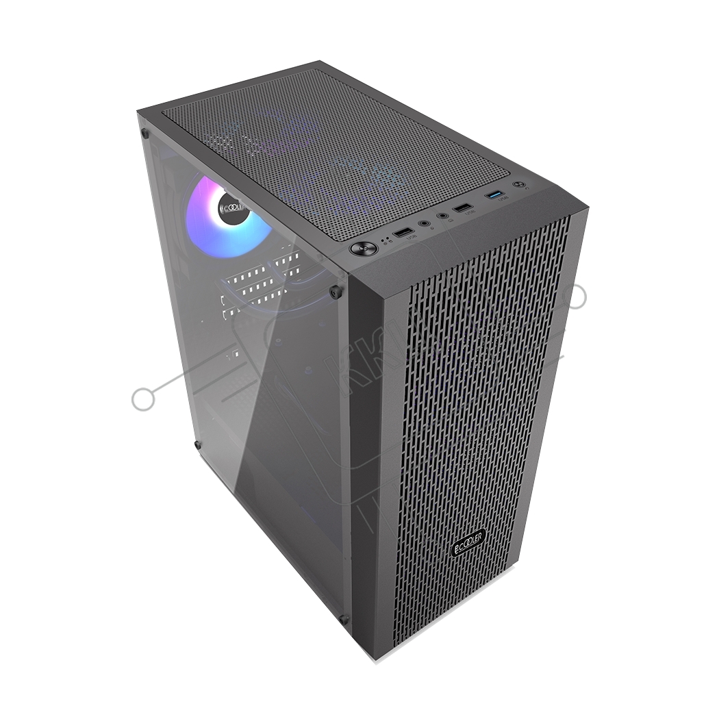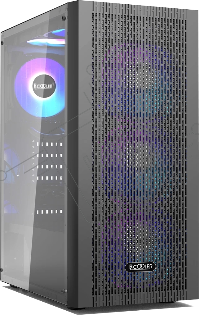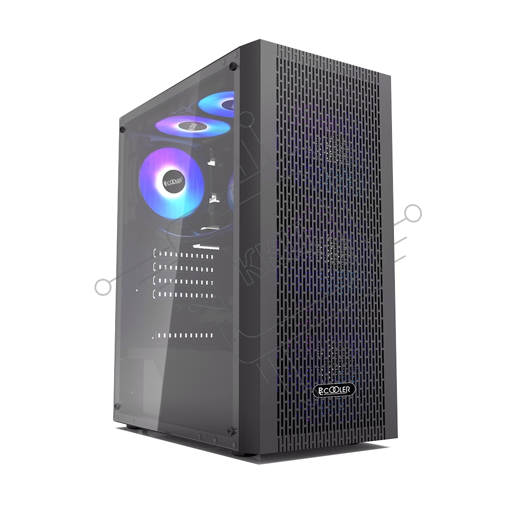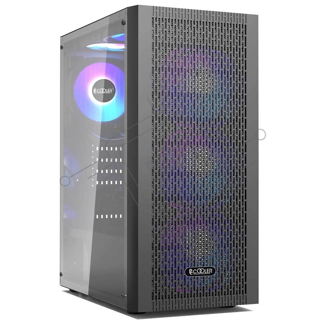 Корпус без блока питания PCCOOLER MA100 MESH BK, Mesh Mid Tower, черный, TG, 0.4 SPCC, 3x120мм ARGb ATX, mATX, mITX 160/310/180мм 2x2.5", 2x3.5", 7xPCI 1xUSB-A 3.0, 2xUSB-A 2.0 360x200x446mm