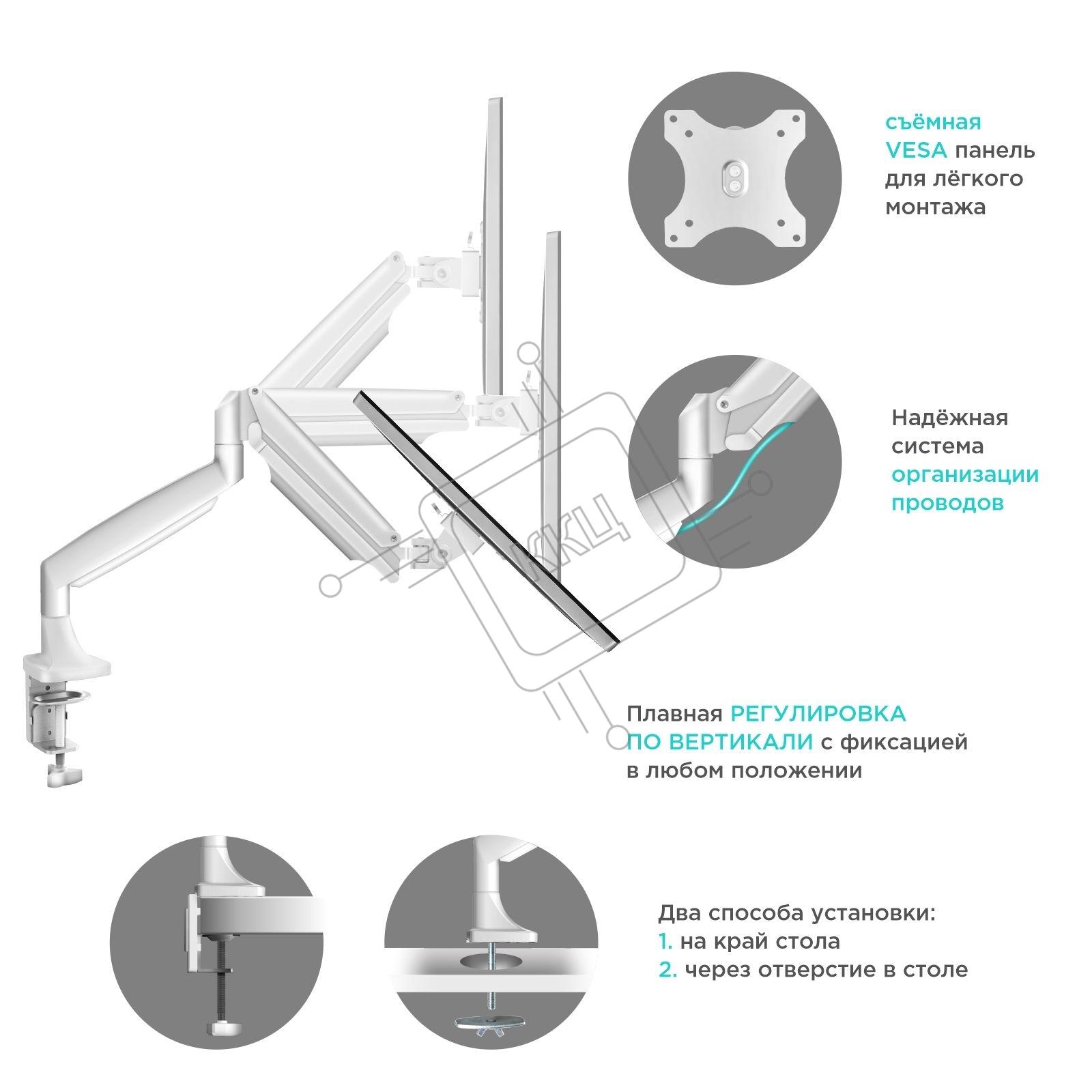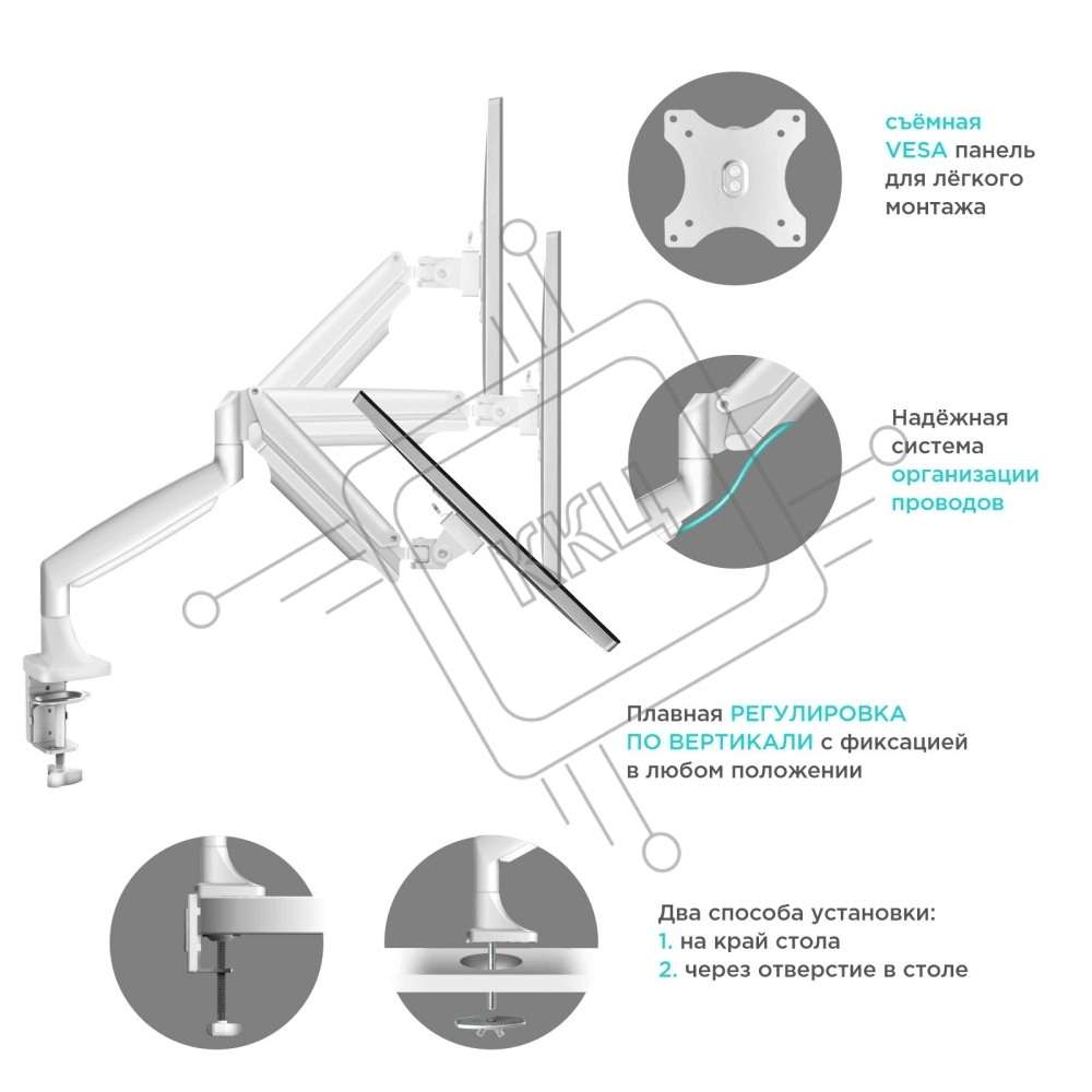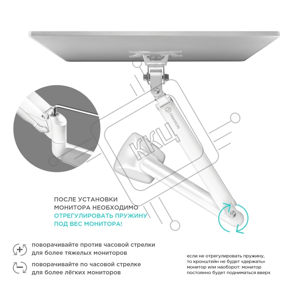 Кронштейн для мониторов ONKRON G100 белый 13"-32" макс.9кг настольный поворот и наклон верт.перемещ.