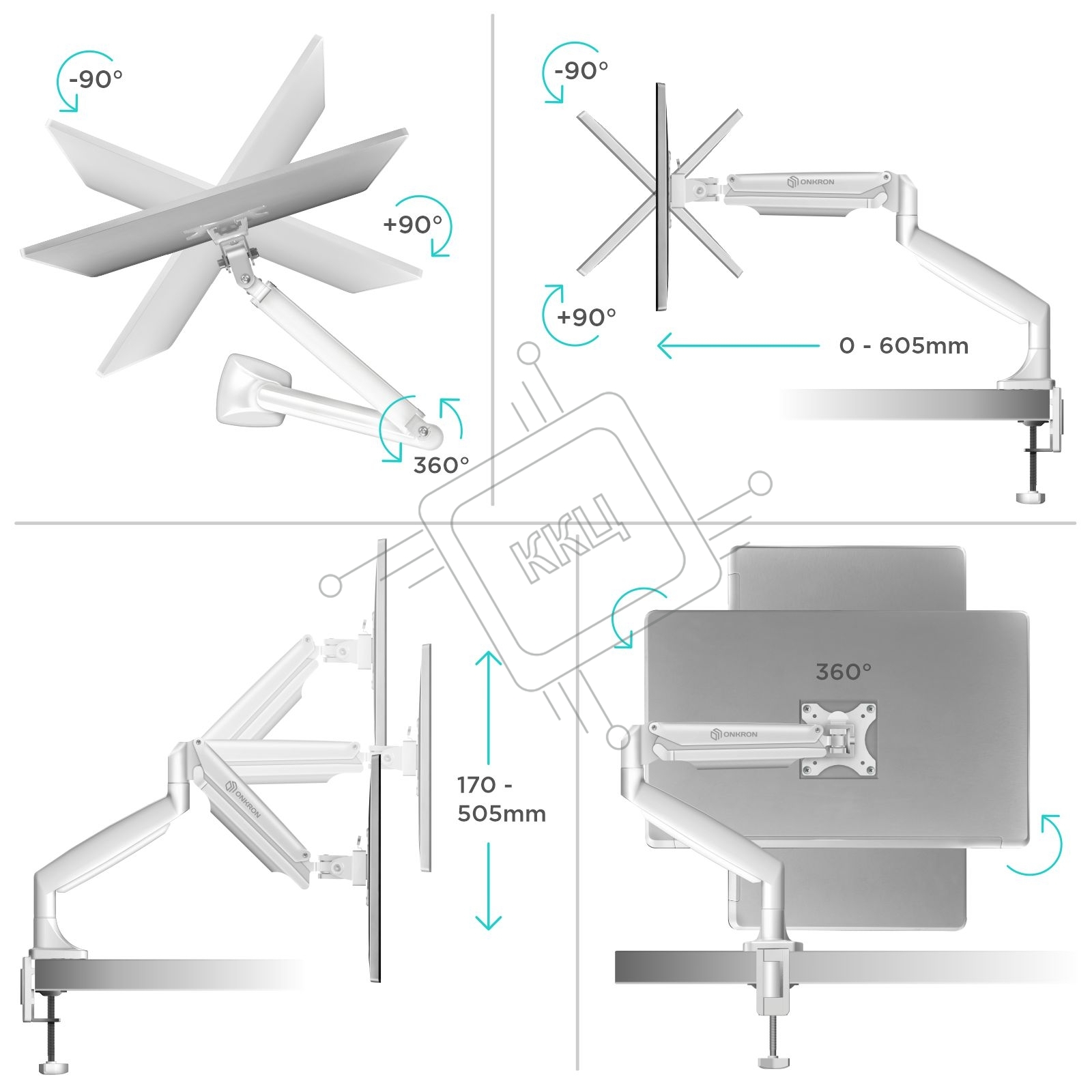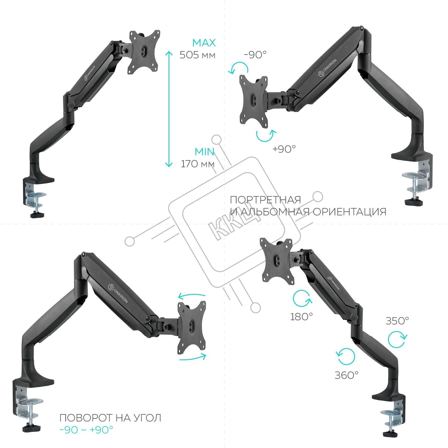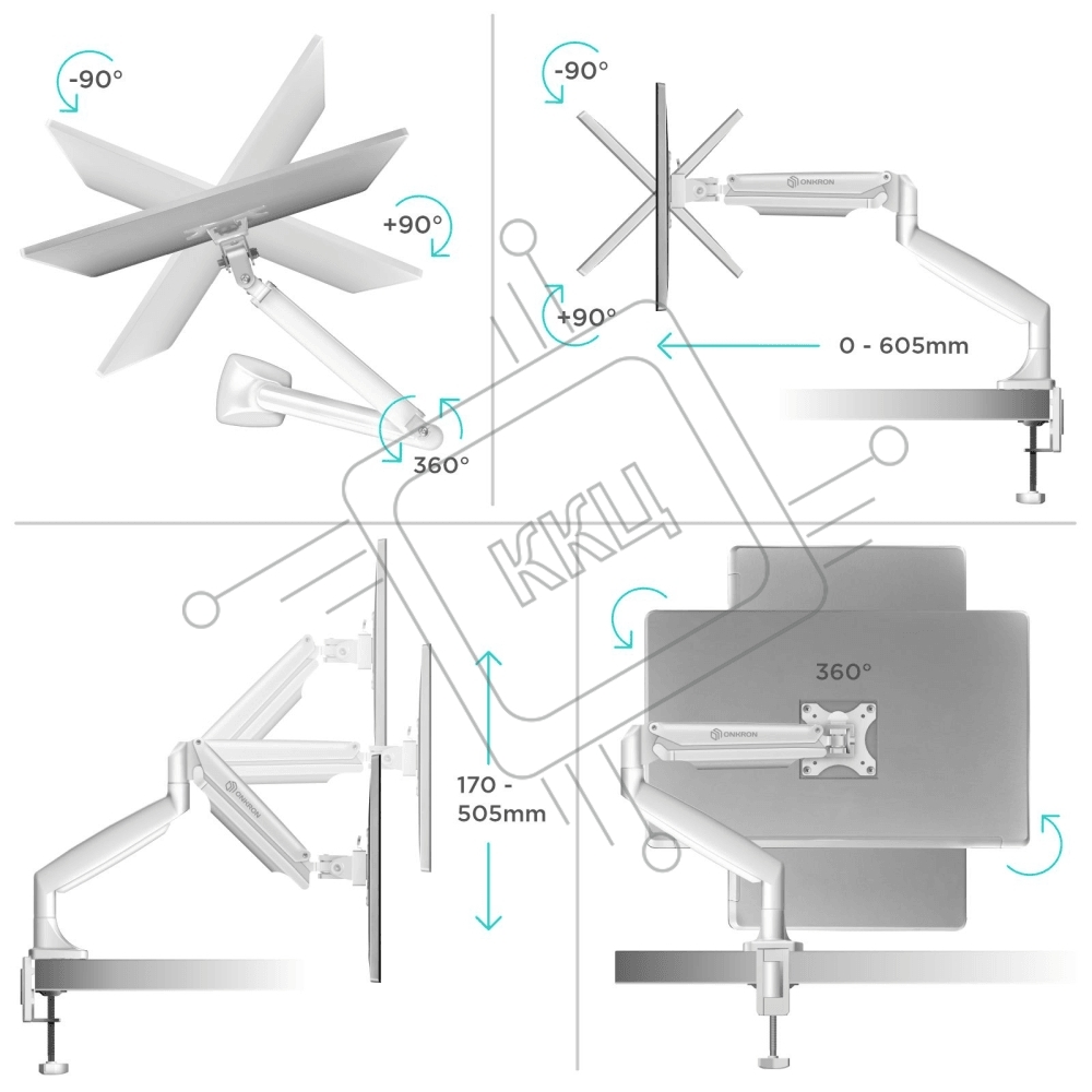 Кронштейн для мониторов ONKRON G100 белый 13"-32" макс.9кг настольный поворот и наклон верт.перемещ.