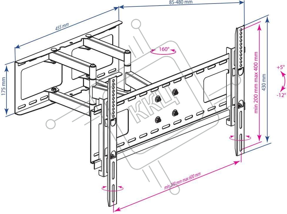 Кронштейн Kromax ATLANTIS-80 черный для LED/LCD телевизоров 32"-75", max 50 кг, настенный