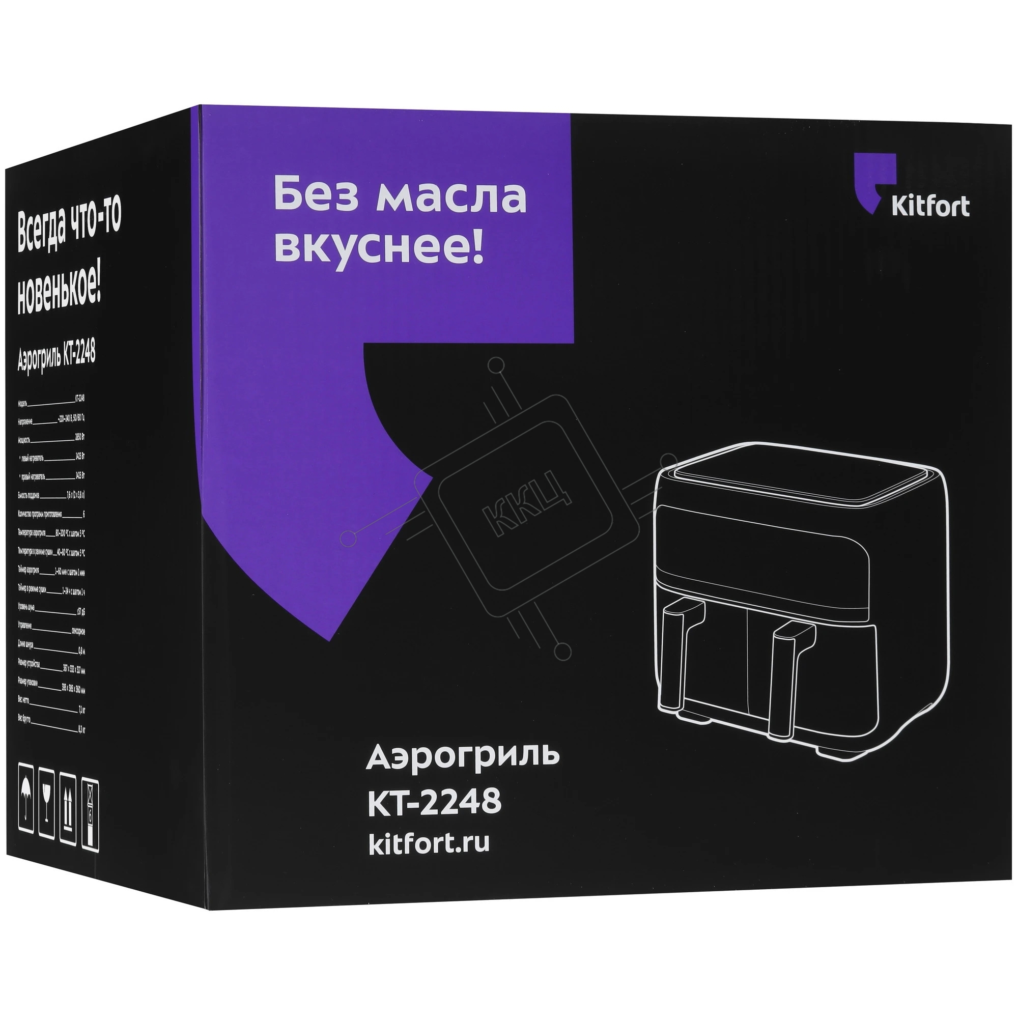 Аэрогриль Kitfort КТ-2248 черный, 2850 Вт, 7.6 л, сенсор, 6 программ