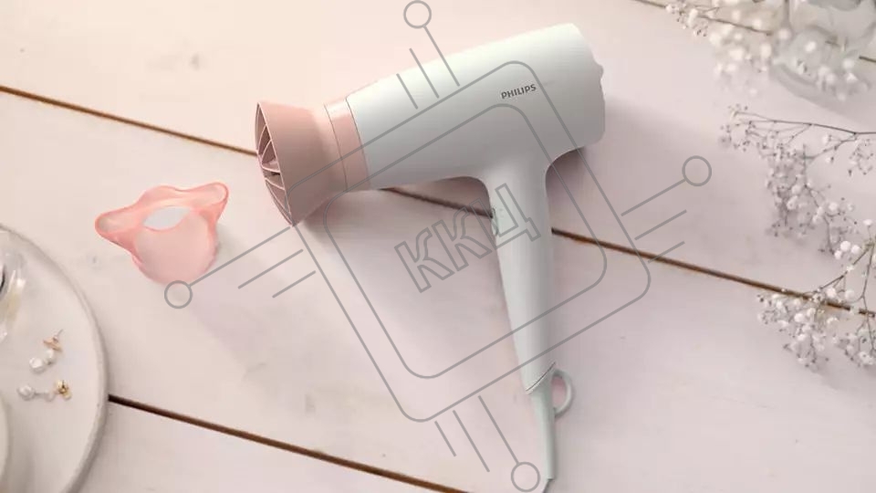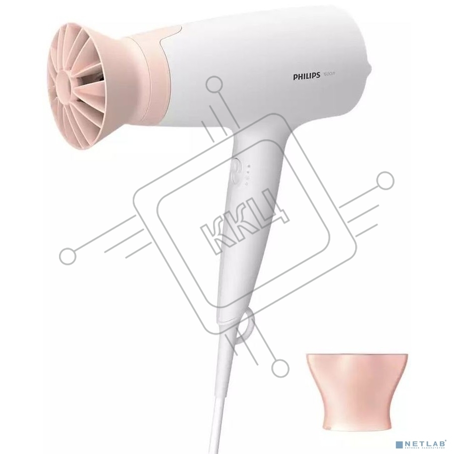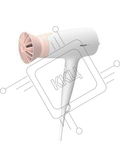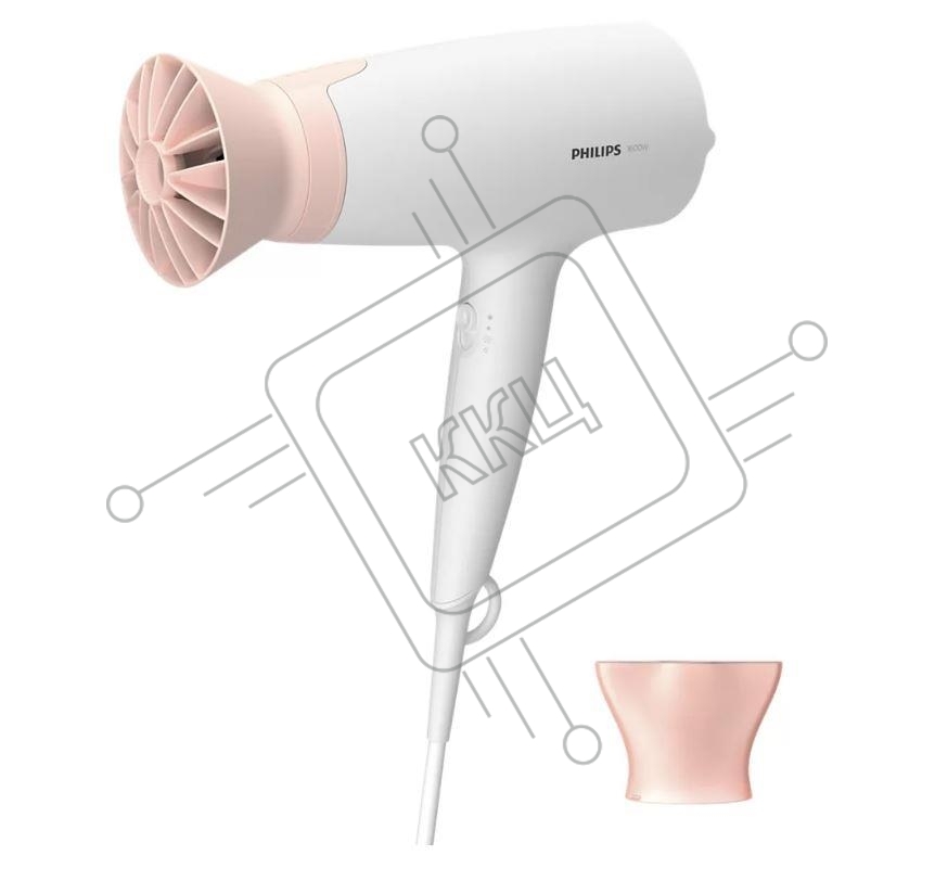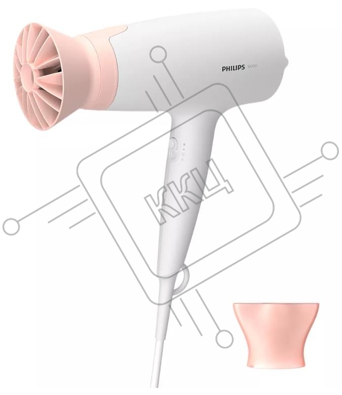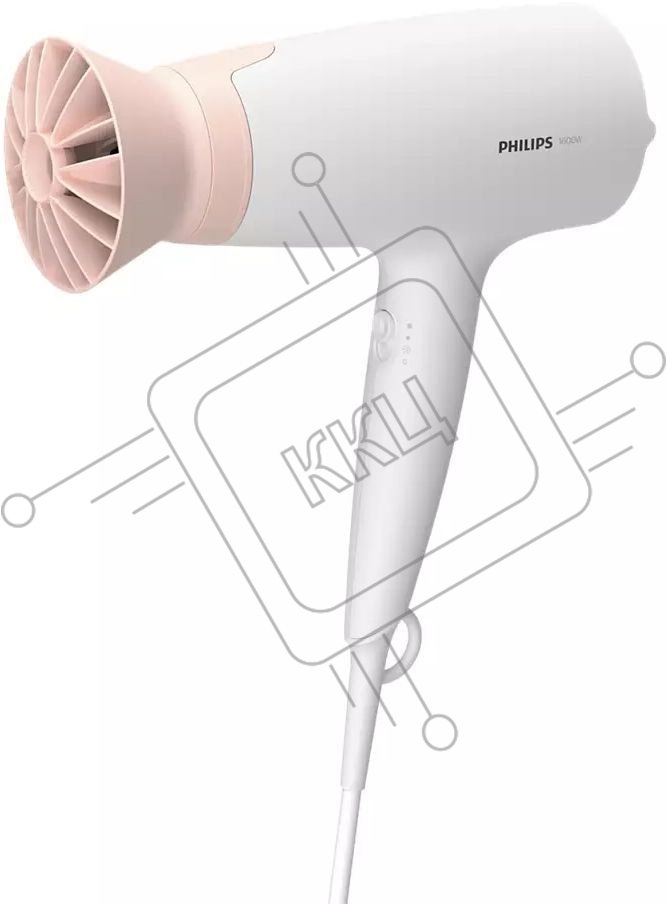 Фен Philips 1600 Вт, 3 режима, насадка ThermoProtect, концентратор, шнур 1,8 м. Цвет: белый с розовым.