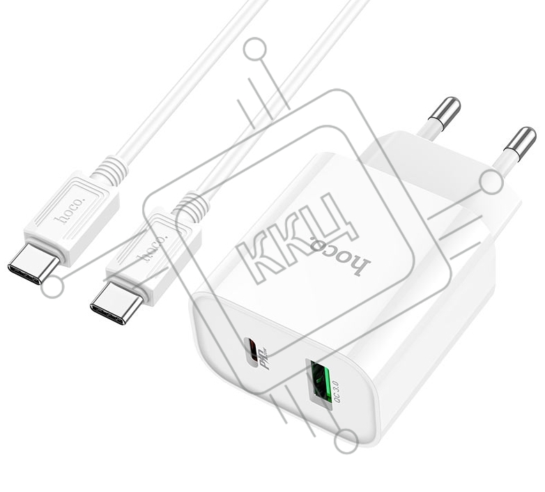 Блок питания (сетевой адаптер) HOCO C80A Plus с кабелем Type-C-Type-C, QC3.0, 20W, белый