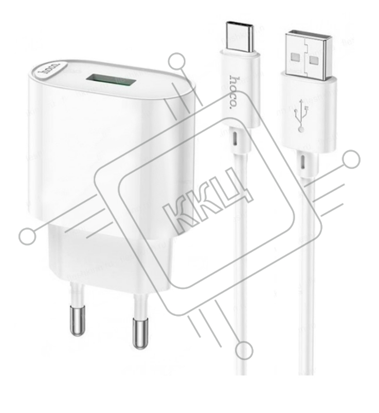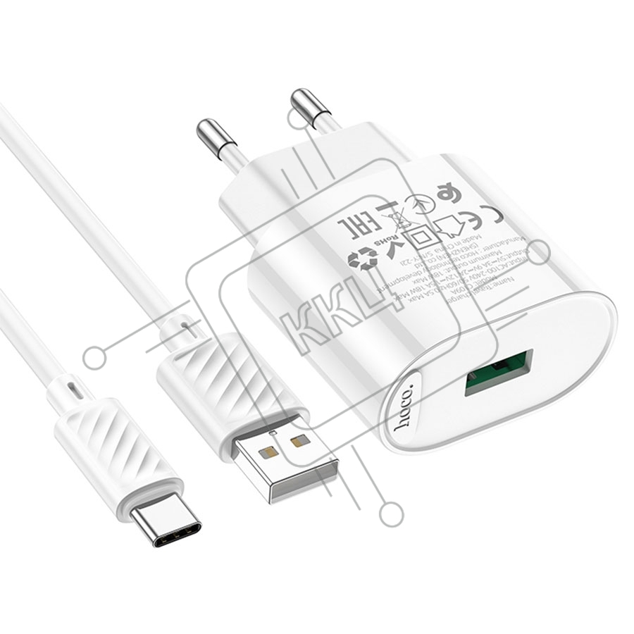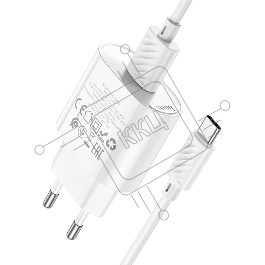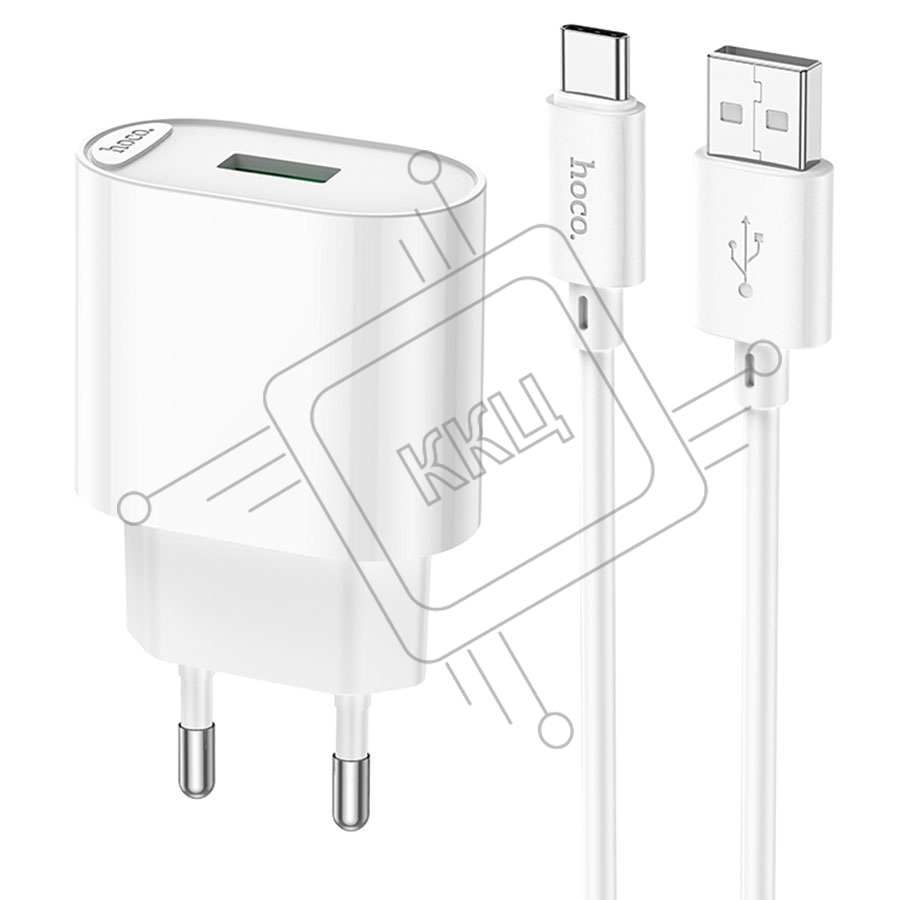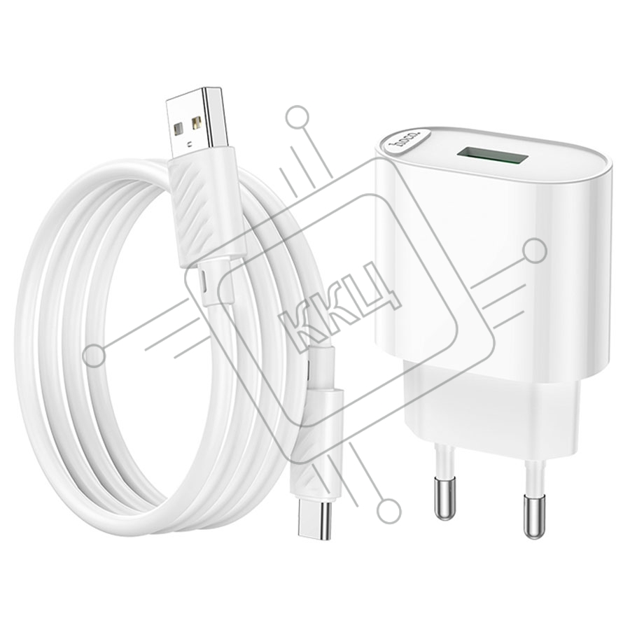 Блок питания (сетевой адаптер) HOCO C109A Fighter, QC3.0, 18W, с кабелем Type-C, белый